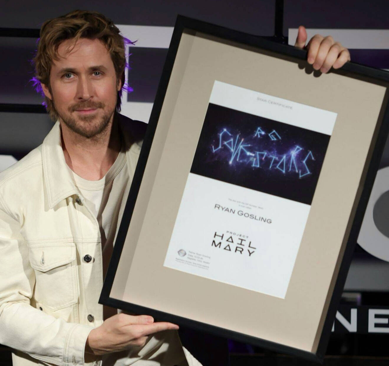 The message read: “R+G SAVE STARS” — a call to action whose meaning becomes even more relevant after watching the film. The idea was supported by an official certificate and the exact coordinates of the constellation created exclusively for the actor.