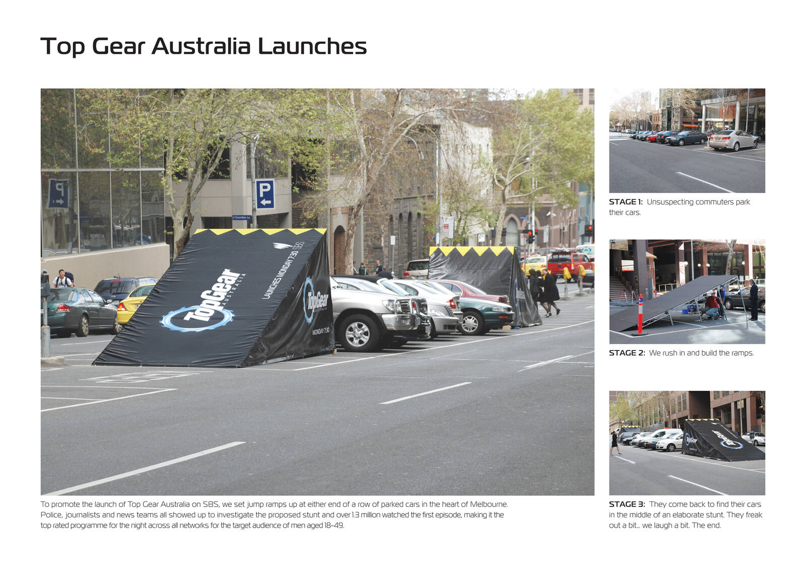 This professional campaign titled 'Ramp' was published in Australia in September, 2008. It was created for the brand: Top Gear, . This Ambient medium campaign is related to the Media industry and contains 1 media asset. It was submitted about 17 years ago.