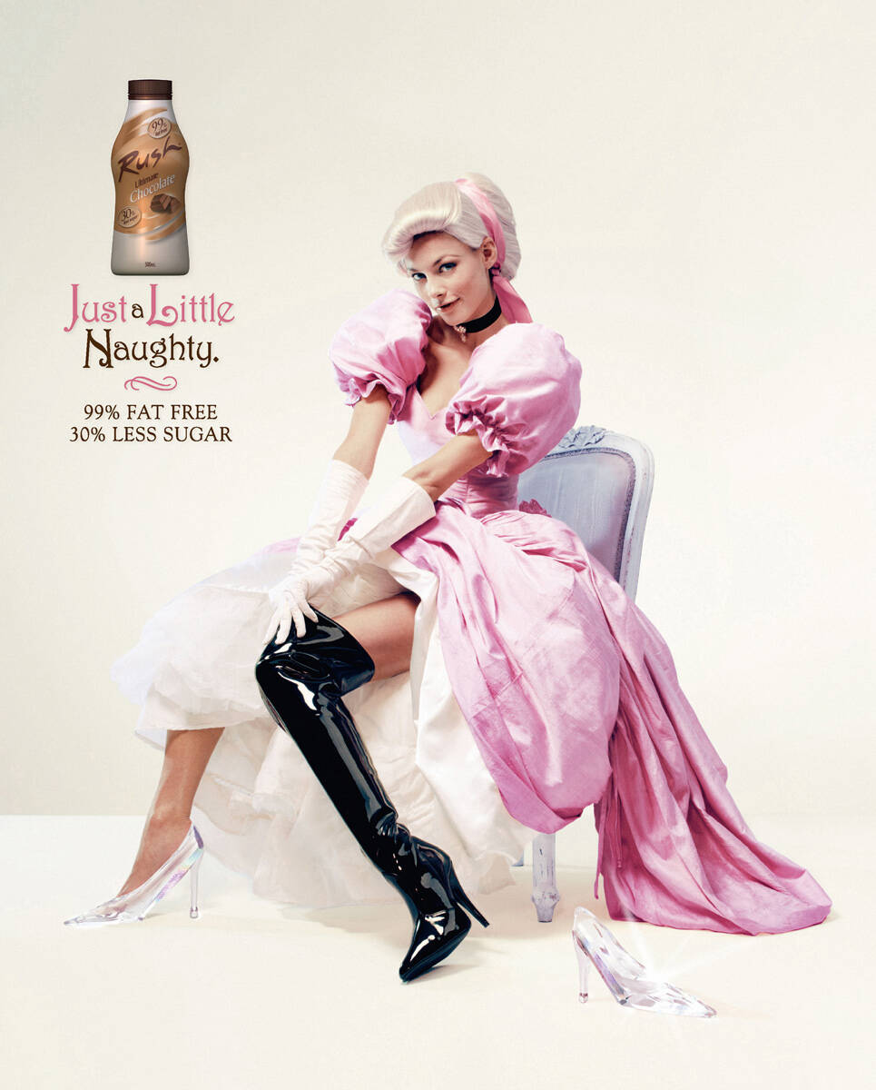 This NSFW professional campaign titled 'Rapunzel, Little red riding-hood, Cinderella' was published on August 01, 2006. It was created for the brand: Rush Chocolate, by ad agency: De Pasquale. This Print medium campaign is related to the Drinks (Non Alcoholic) industry and contains 3 media assets. It was submitted over 19 years ago.