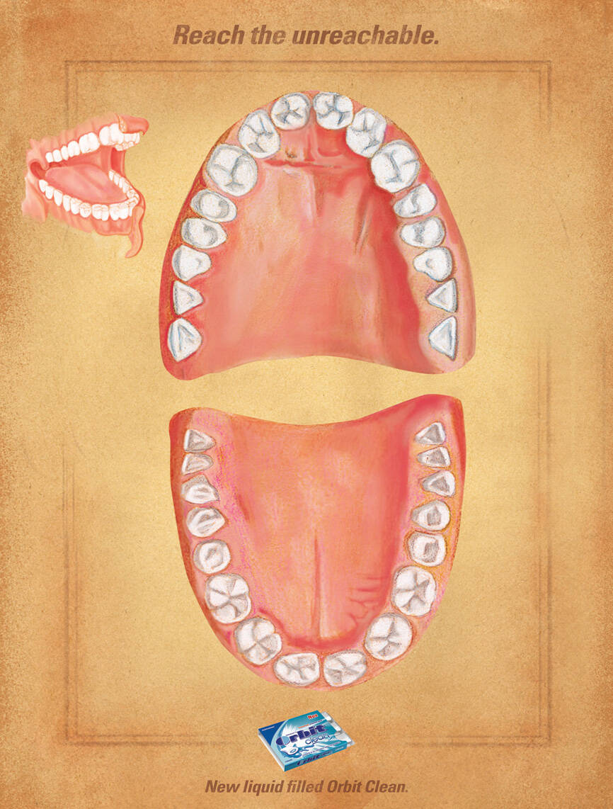 This professional campaign titled 'Reach' was published in Romania in May, 2008. It was created for the brand: Orbit, by ad agency: BBDO. This Print medium campaign is related to the Health industry and contains 1 media asset. It was submitted over 17 years ago.