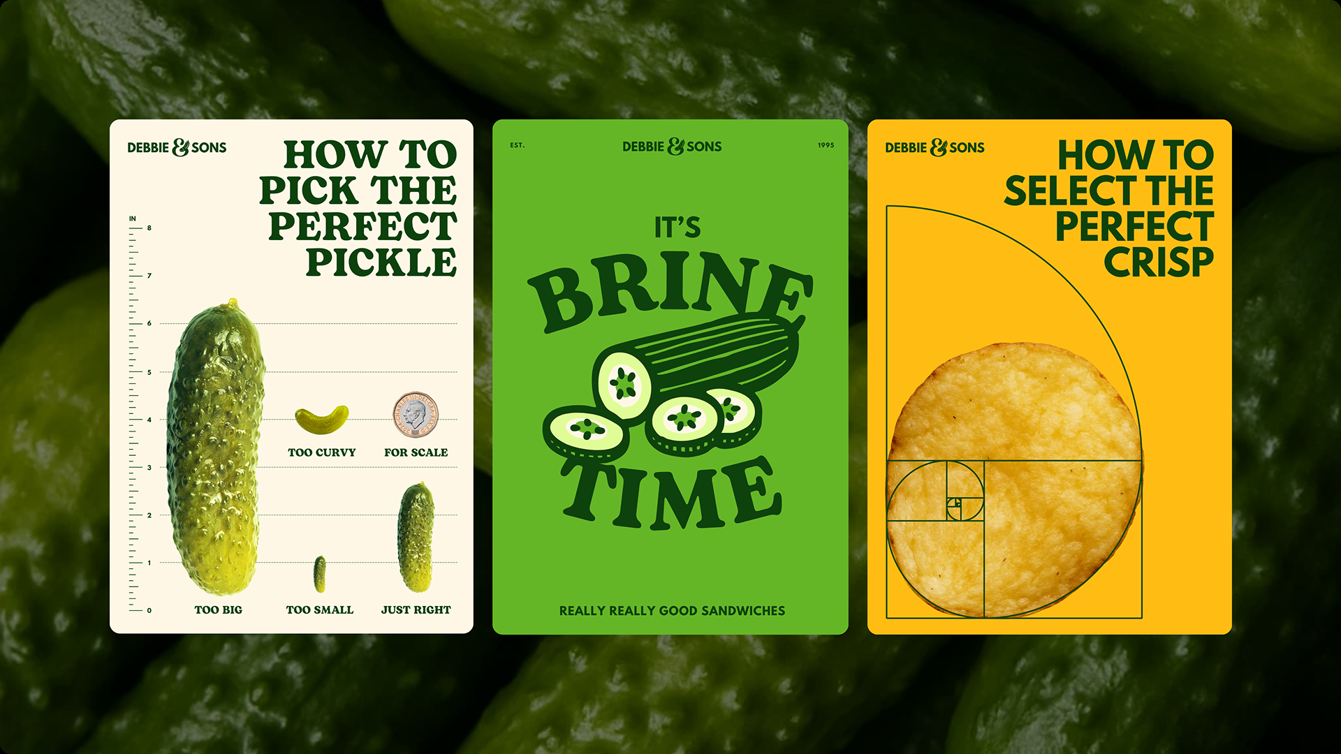 A dash of tongue-in-cheek with Stink Studios Building on June’s Waterloo billboard takeover, which brought Canva’s tools to life with playful takes on go-to requests like “make the logo bigger”, this new campaign, in close collaboration between Stink Studios and Canva’s in-house marketing team, keeps that same tongue-in-cheek energy front and centre. The hero ad film, produced by Stink and directed by Eoin Glaister, stars Debbie, the force behind Debbie & Sons, a sandwich maker whose crisp and pickle sandwiches become a hit once she and her sons discover Canva’s creative tools and give their brand identity the makeover it needs.