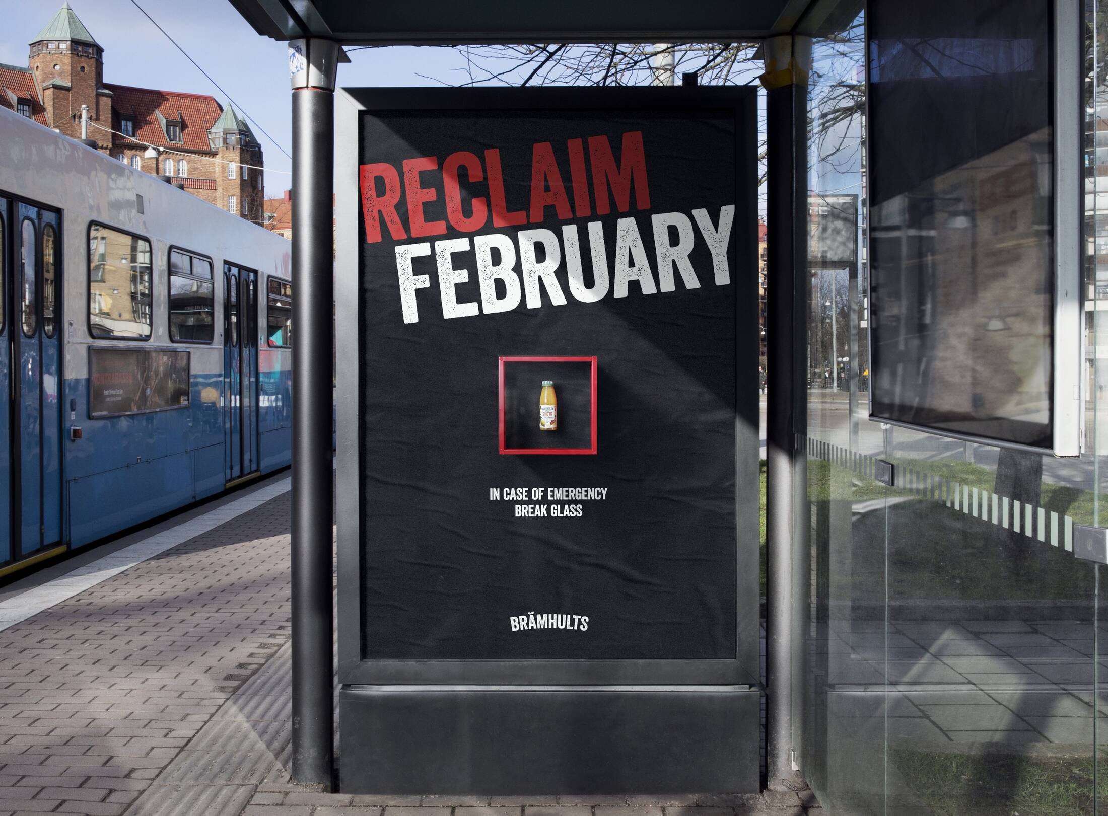 This professional campaign titled 'Reclaim February' was published in Sweden in February, 2020. It was created for the brand: Bramhults, by ad agency: Stendahls. This OOH Outdoor medium campaign is related to the Drinks (Non Alcoholic) industry and contains 1 media asset. It was submitted almost 6 years ago by CCO: Martin Cedergren of Stendahls.