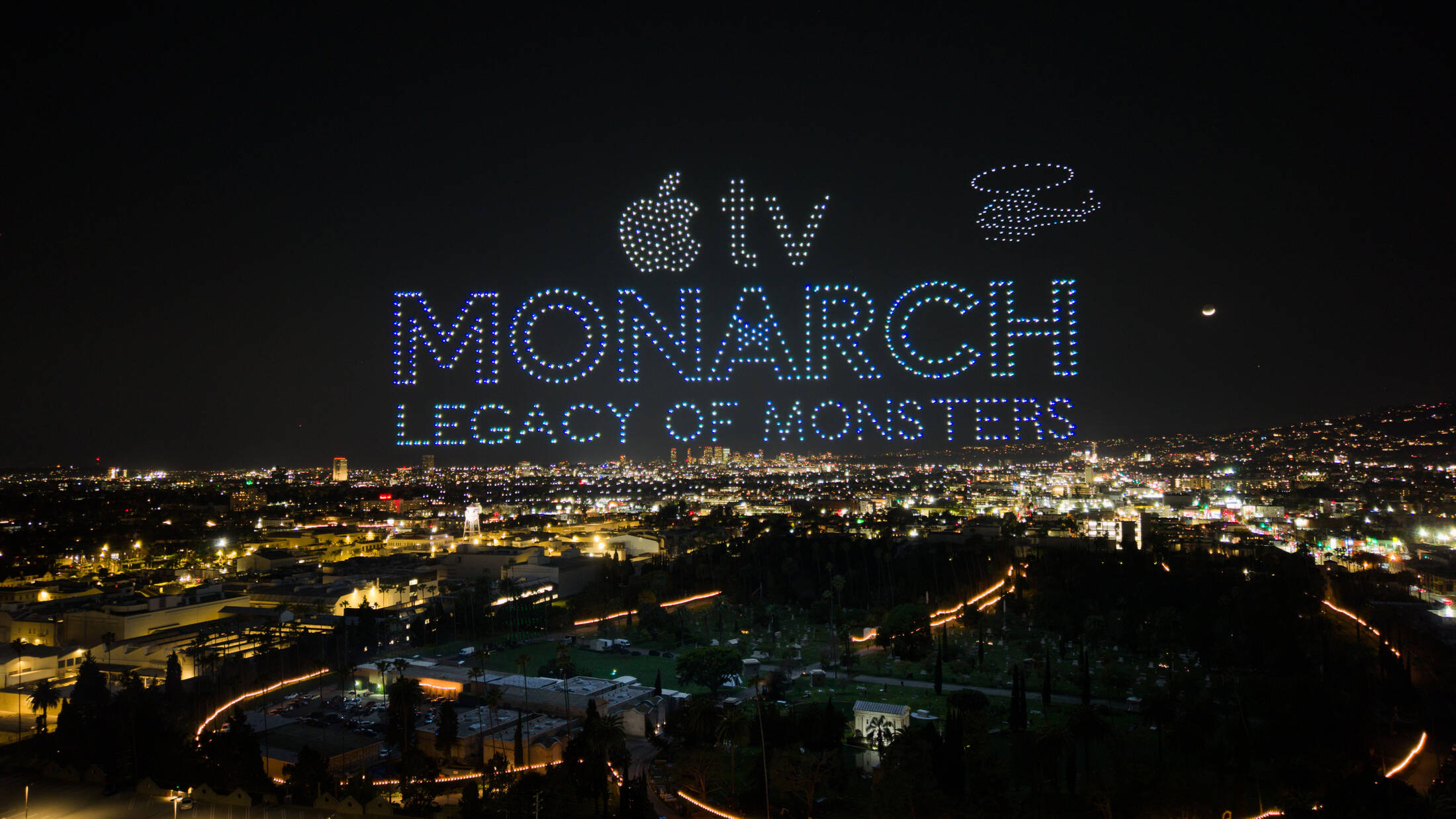 Last night, in the heart of Hollywood, Apple TV celebrated the highly anticipated second season of “Monarch: Legacy of Monsters,” with a record-breaking aerial display that filled the sky with the biggest monsters from Legendary's Monsterverse.