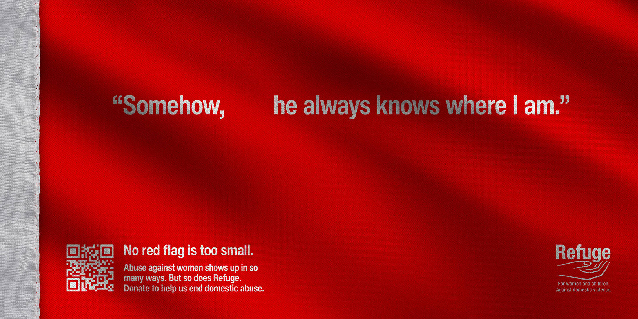 This professional campaign titled 'Red Flags' was published in United Kingdom in March, 2025. It was created for the brand: Refuge, by ad agency: AMV BBDO. This OOH Outdoor medium campaign is related to the Public Interest industry and contains 8 media assets. It was submitted 9 months ago.