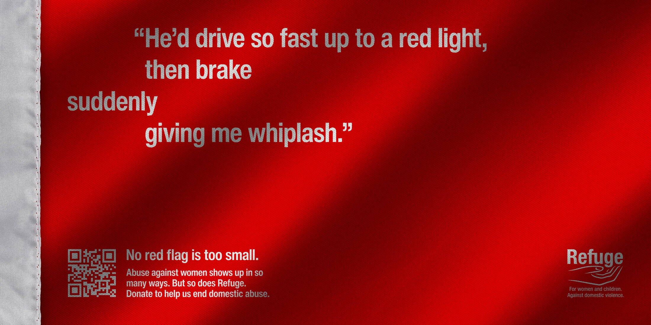 Using the often-trivialised image of the red flag as a signal of toxic or abusive traits, Refuge’s campaign is designed to show that there are many red flags when it comes to domestic abuse and that ‘no red flag is too small’ - a message the charity wants everyone across the UK to understand.