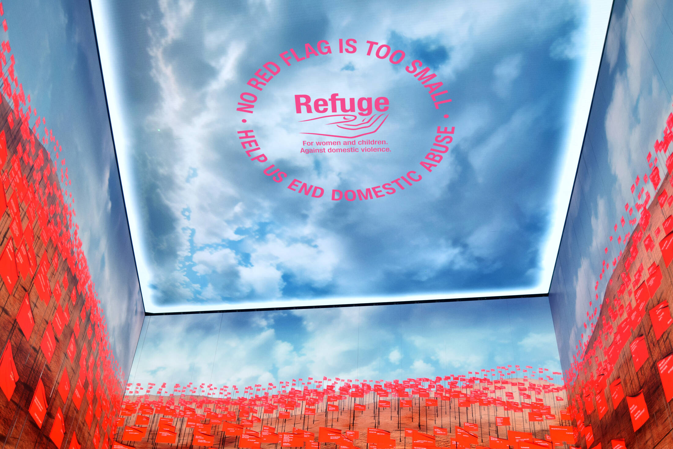 Domestic abuse charity Refuge is following up on its Make the World a Refuge campaign with a sea of red flags at London’s Outernet. The installation will feature quotes from domestic abuse survivors to highlight the often unseen, unrecognised and unreported forms of harm and control that women face.