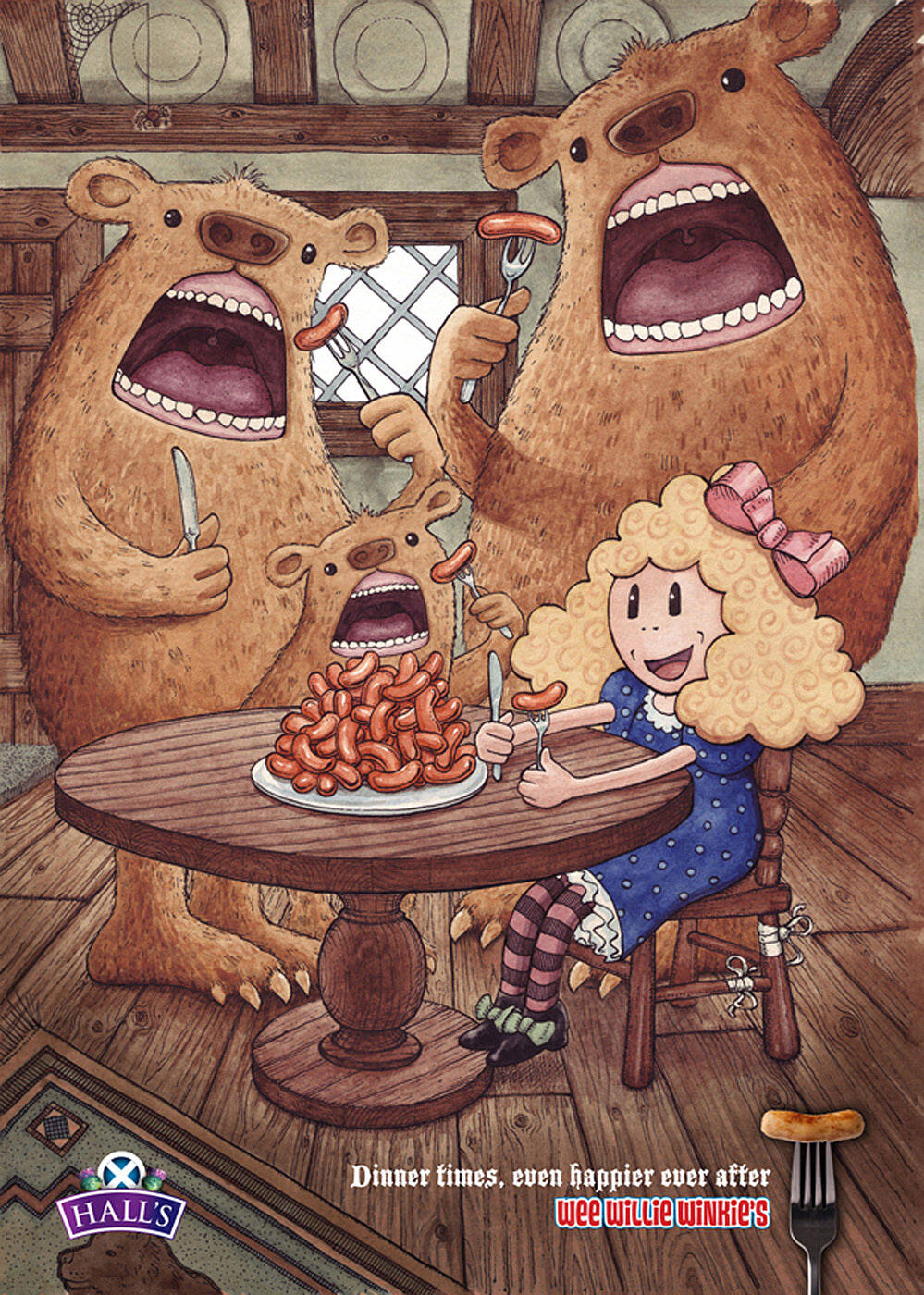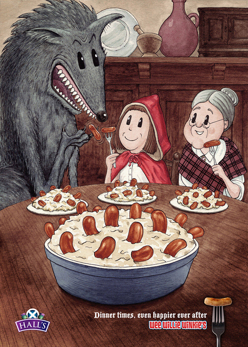 This professional campaign titled 'Red Riding Hood, Hansel & Gretel, Goldilocks' was published in United Kingdom in June, 2010. It was created for the brand: Hall's, by ad agency: Denvir. This Print medium campaign is related to the Food industry and contains 3 media assets. It was submitted over 15 years ago.
