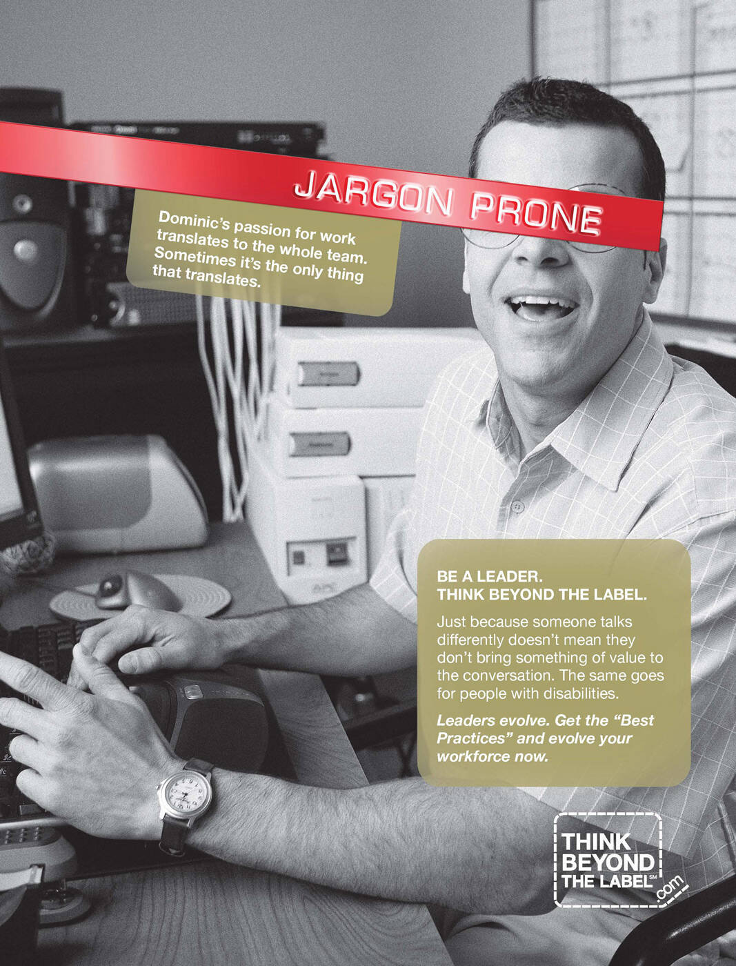This professional campaign titled 'Rhythm, Pattern, Jargon' was published in United States in February, 2010. It was created for the brand: National Advocate for People with Disabilities, by ad agency: Wirestone. This Print medium campaign is related to the Public Interest industry and contains 3 media assets. It was submitted almost 16 years ago.