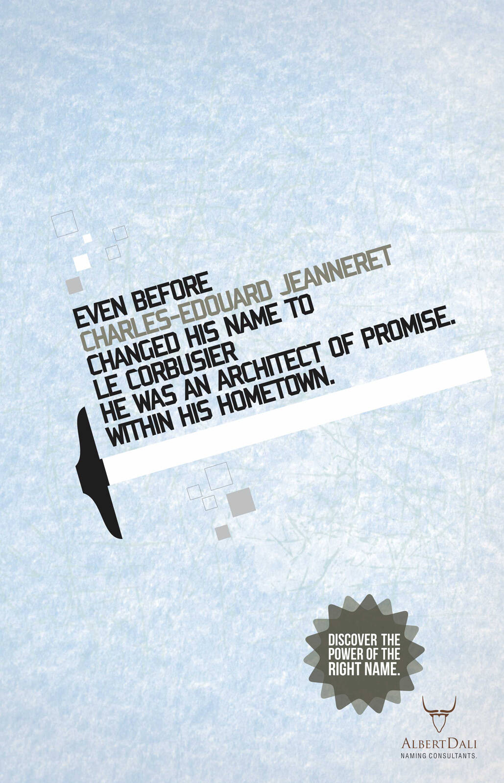 This professional campaign titled 'Right Name' was published in India in March, 2012. It was created for the brand: Albert Dali, by ad agency: Lucifer Labs. This Print medium campaign is related to the Professional Services industry and contains 4 media assets. It was submitted over 13 years ago.