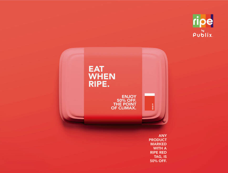 This student campaign titled 'Ripe - Expiring Waste' was published in United States in September, 2019. It was created for the brand: Publix, . This Integrated medium campaign is related to the Food industry and contains 5 media assets. It was submitted about 6 years ago by Art Direction Student: Sofia Coelho of Miami Ad School.