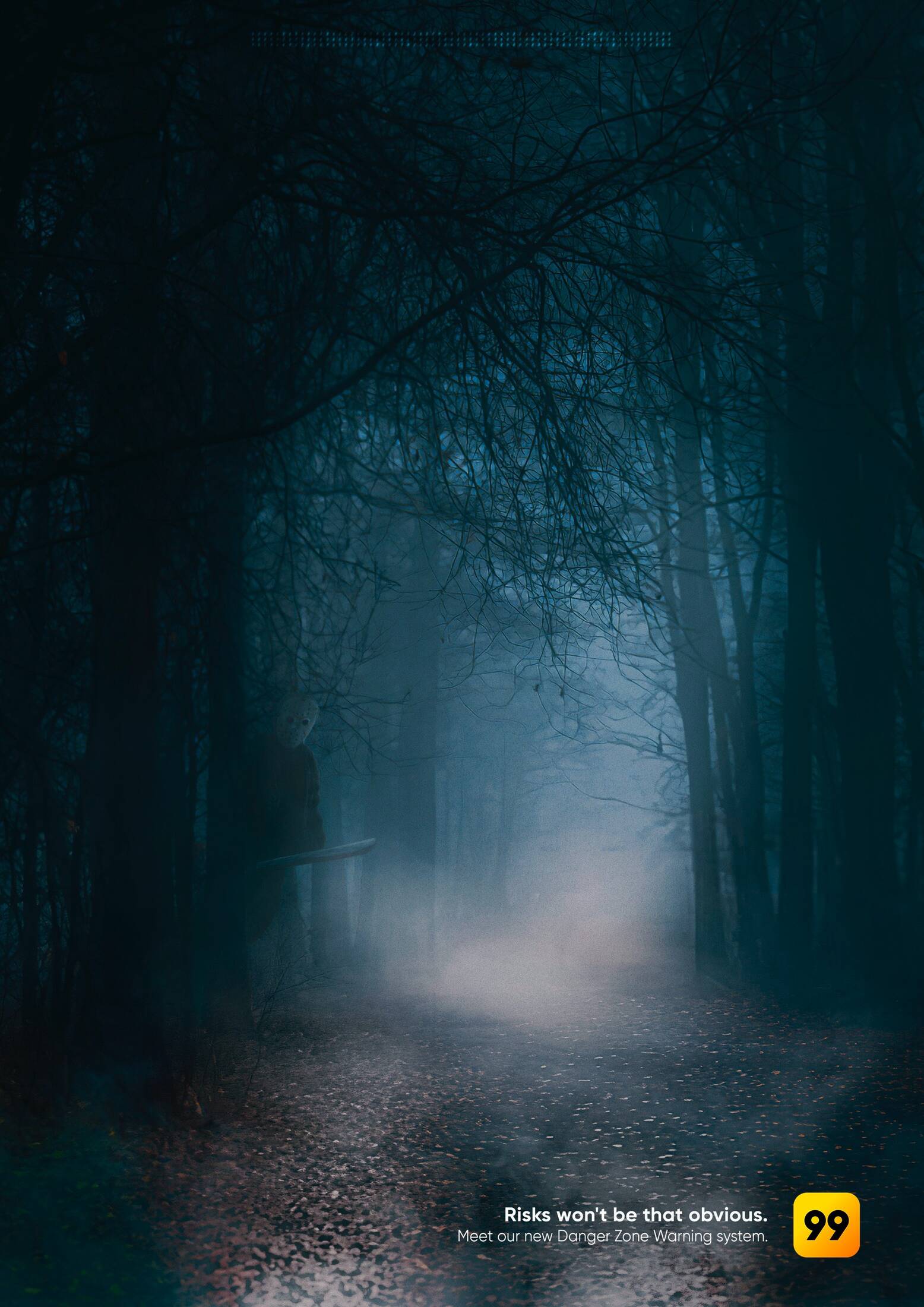 99 is an urban mobility app, very similar to Uber, here in Brazil. This campaign announces the new Danger Zone Warning system for drivers, a functionality that informs drivers about crime areas, especially at night. The campaign is illustrated by referencing movie scenes where danger was obviously imminent. Unlike the movies, risks in real life certainly won't be that evident.
