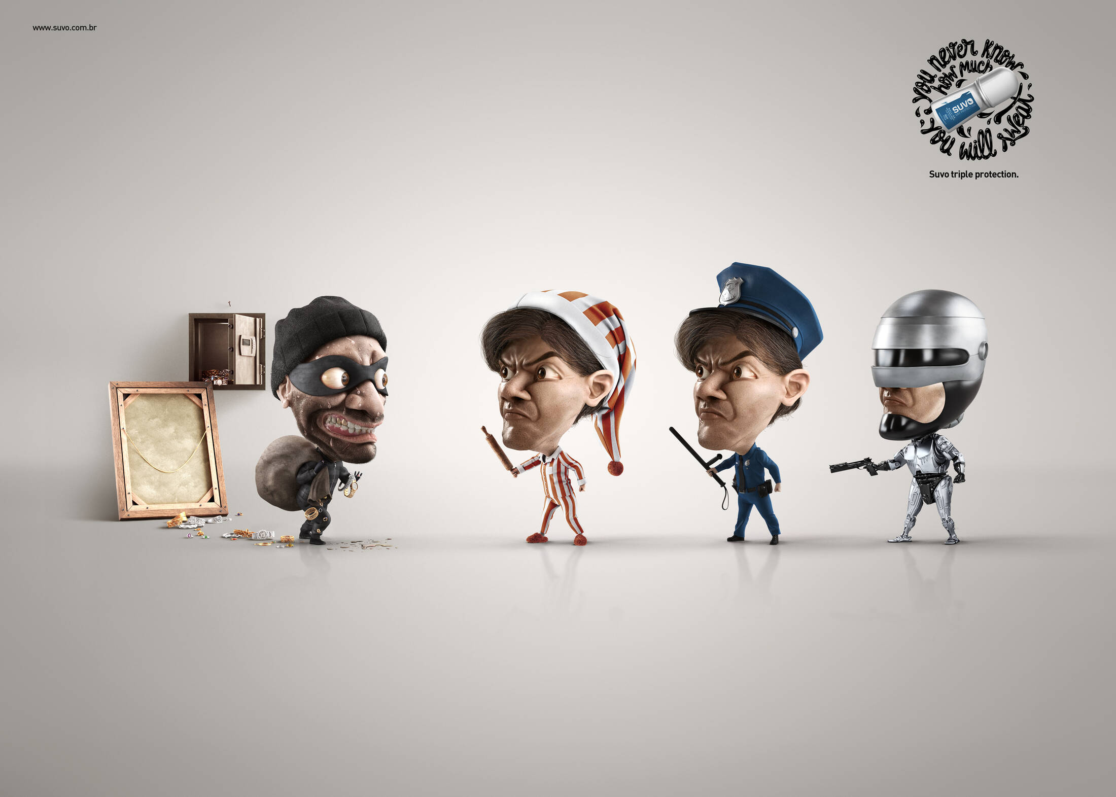 This professional campaign titled 'Robocop, Jason, Steve' was published in Brazil in July, 2017. It was created for the brand: SUVO, by ad agency: Propeg. This Print medium campaign is related to the Health industry and contains 3 media assets. It was submitted over 8 years ago.