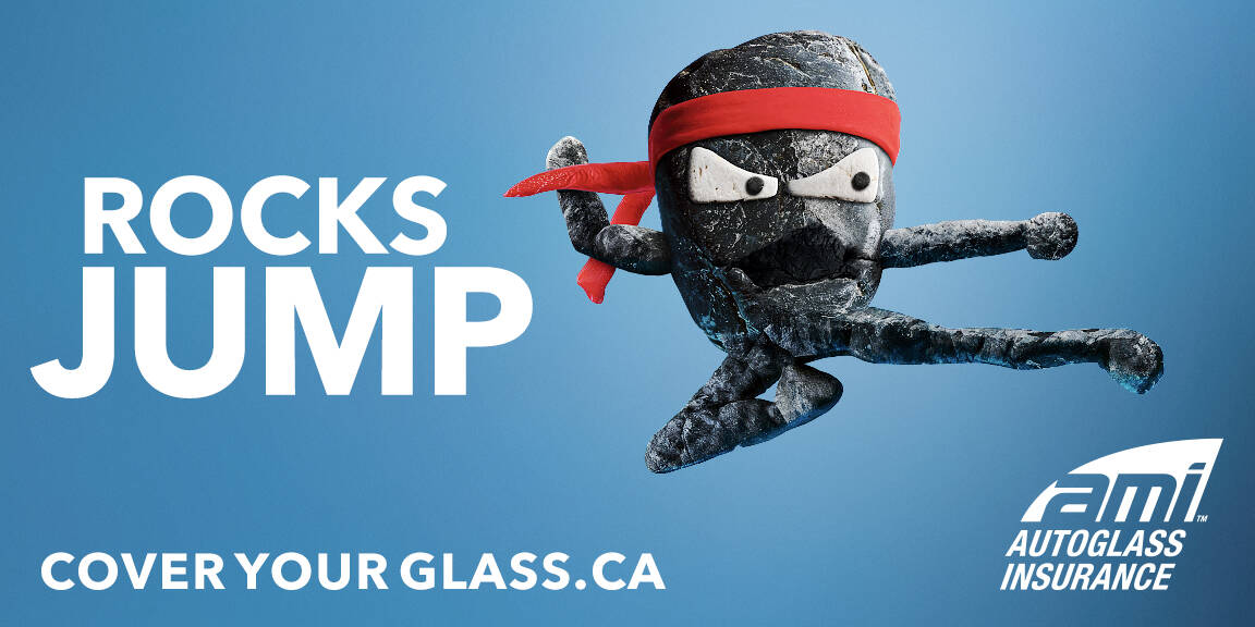 This professional campaign titled 'Rocks Jump' was published in Canada in April, 2023. It was created for the brand: AMI Autoglass insurance, by ad agency: TRGR. This OOH Outdoor medium campaign is related to the Automotive and Personal Transportation and Insurance industries and contains 3 media assets. It was submitted over 2 years ago by Art Director: Brad Connell of TRGR.
