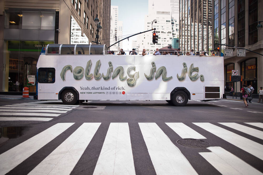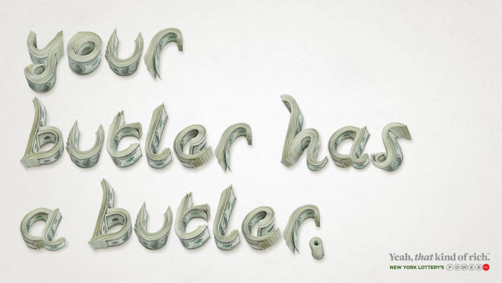 This professional campaign titled 'Rolling in it, Made of Money, Butler, Banks, You Shop, Ma...' was published in United States in August, 2012. It was created for the brand: New York Lottery, by ad agency: DDB. This OOH Outdoor medium campaign is related to the Gaming industry and contains 5 media assets. It was submitted about 13 years ago.