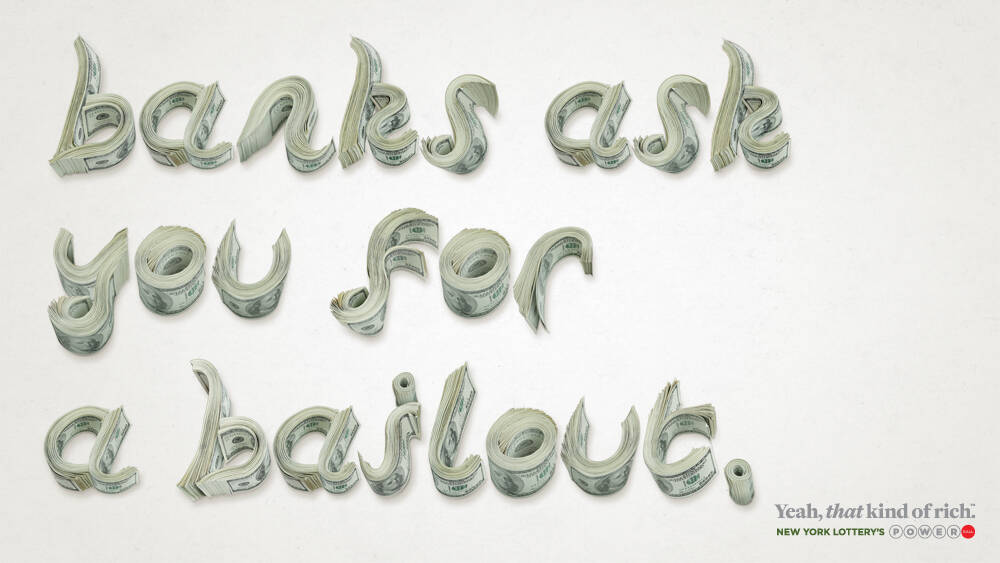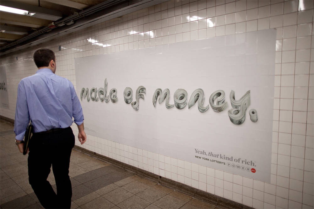 DDB New York has created a new typeface made of money for their latest print and outdoor campaign for New York Lottery.