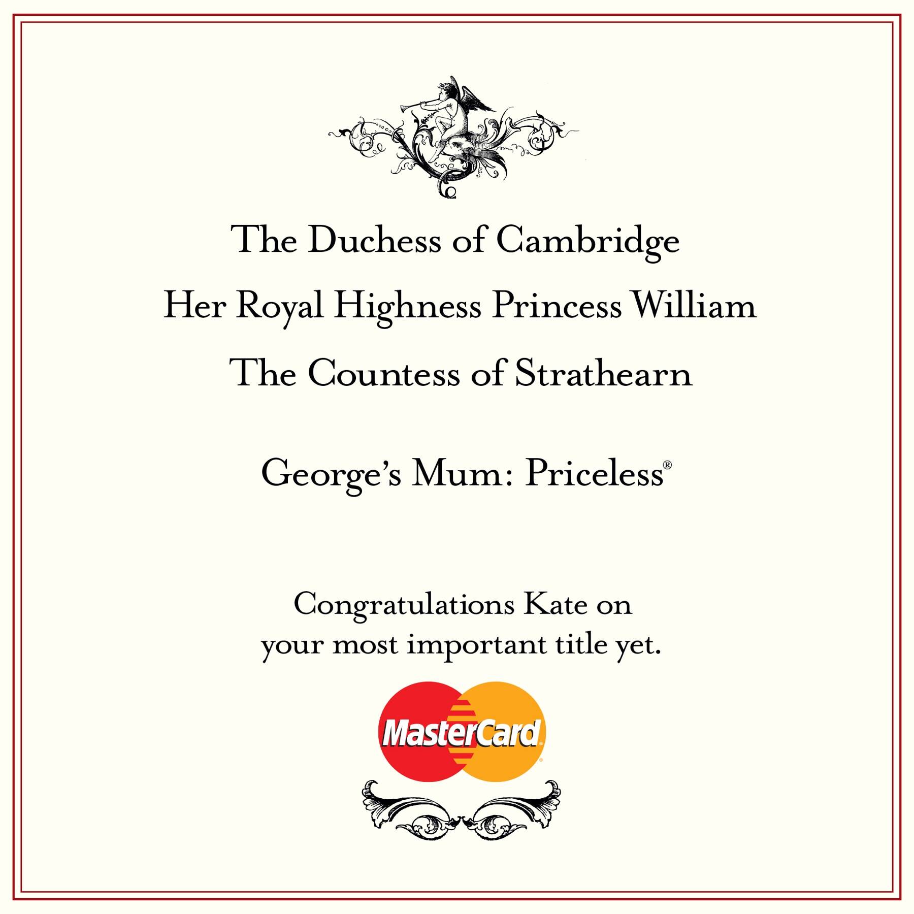 This professional campaign titled 'Royal Family' was published in United Kingdom in July, 2013. It was created for the brand: MasterCard, by ad agency: McCann. This Print medium campaign is related to the Finance industry and contains 1 media asset. It was submitted over 12 years ago.
