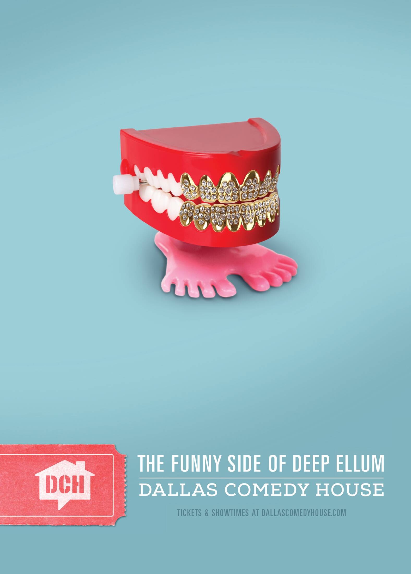 This professional campaign titled 'Rubber Chicken, Groucho Glasses, Chatter Teeth' was published in United States in November, 2013. It was created for the brand: Dallas Comedy House, by ad agency: Johnson & Sekin. This OOH Outdoor medium campaign is related to the Recreation, Leisure industry and contains 3 media assets. It was submitted almost 12 years ago.
