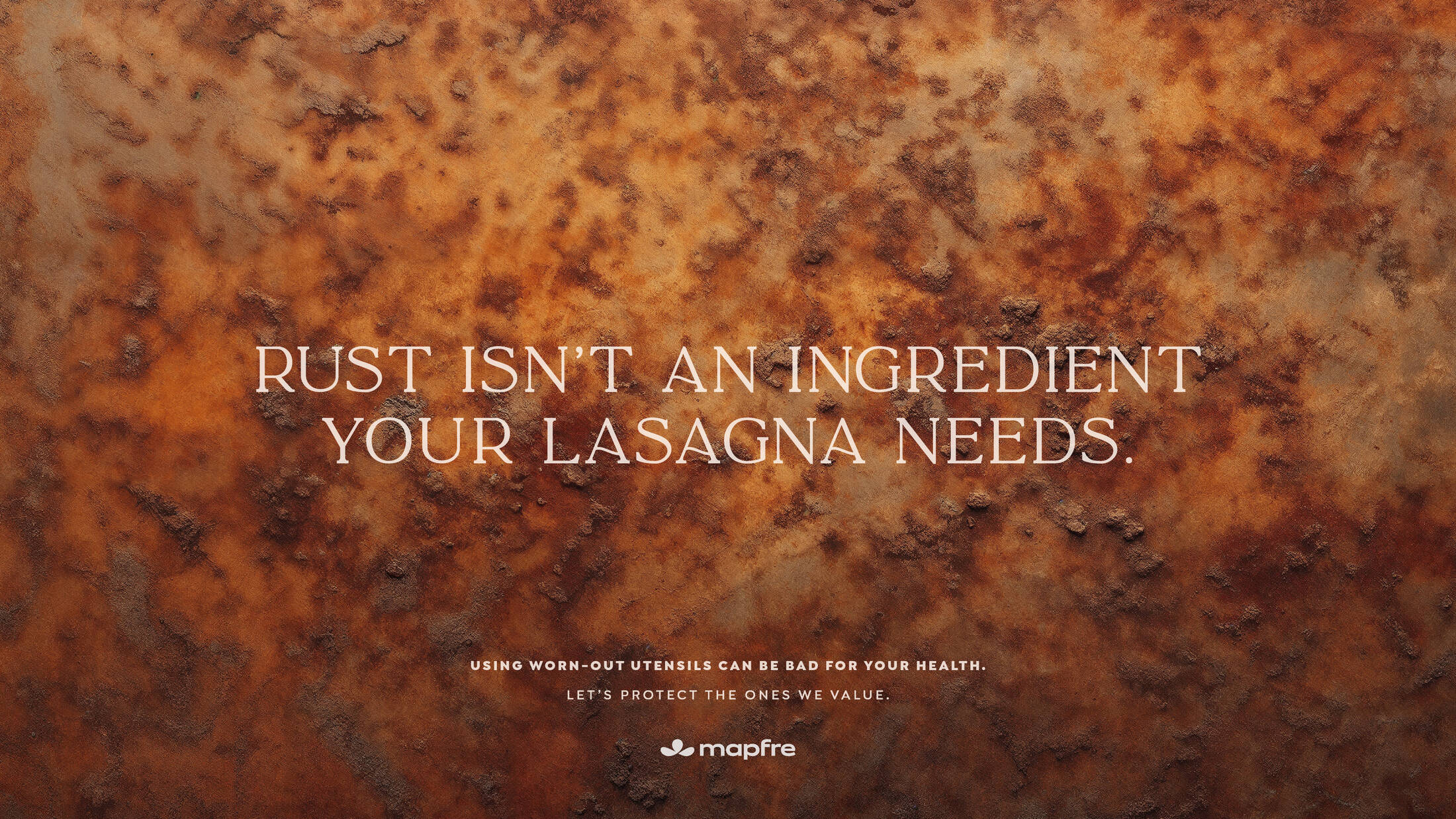 That’s why Mapfre Peru created this campaign: to turn an everyday oversight into a moment of awareness. By visually confusing rust with familiar dishes (like crème brûlée, lasagna, and roasted turkey) the campaign invites a second look, revealing something that shouldn’t be there.