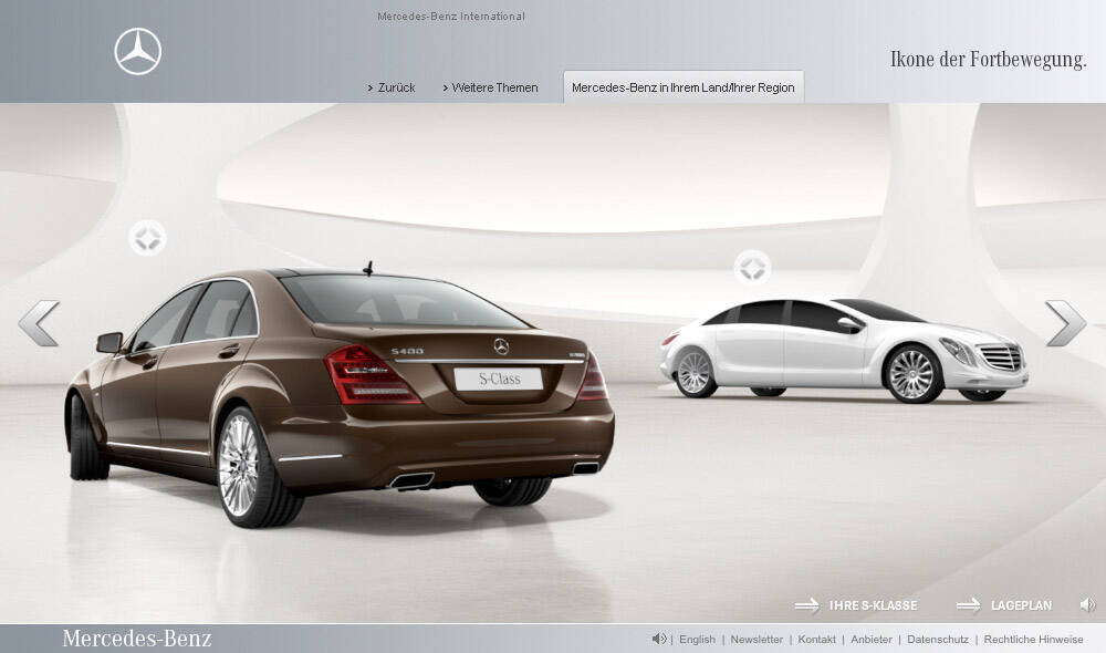 This professional campaign titled 'S-Class 2009 online special' was published in Germany in April, 2009. It was created for the brand: Mercedes, by ad agency: Scholz & Volkmer. This Digital medium campaign is related to the Automotive and Personal Transportation industry and contains 1 media asset. It was submitted over 16 years ago.