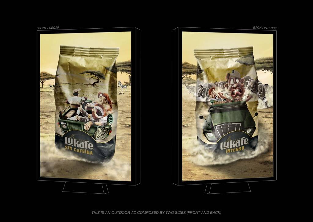 This professional campaign titled 'Safari, River' was published in Colombia in July, 2013. It was created for the brand: Lukafe, by ad agency: BBDO. This OOH Outdoor medium campaign is related to the Drinks (Non Alcoholic) industry and contains 2 media assets. It was submitted over 12 years ago.