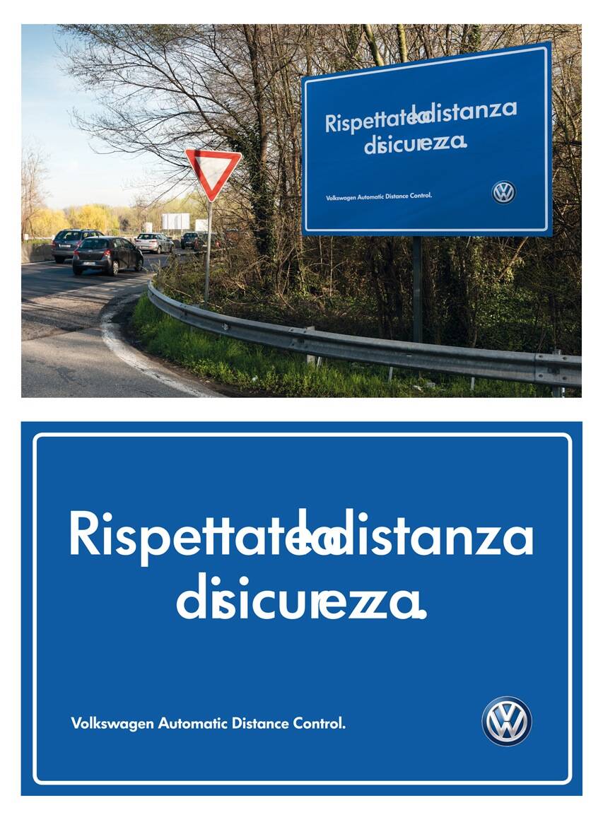 This professional campaign titled 'Safe distance' was published in Italy in April, 2013. It was created for the brand: Volkswagen, by ad agency: DDB. This OOH Outdoor medium campaign is related to the Automotive and Personal Transportation industry and contains 1 media asset. It was submitted over 12 years ago.
