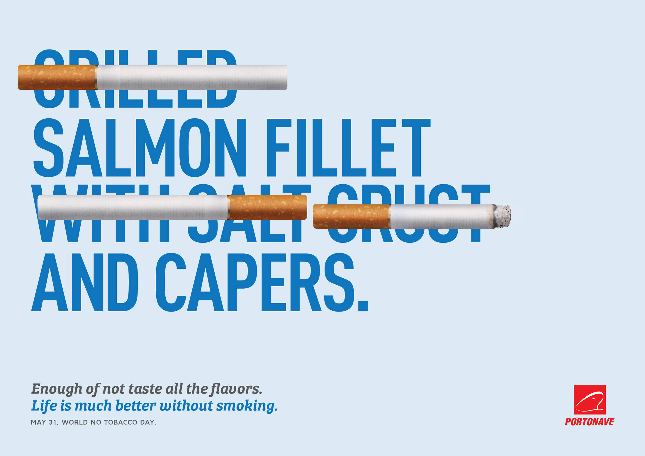 This professional campaign titled 'Salmon Fillet and Capers, Aroma of Chocolat Cake, Sunday ...' was published in Brazil in June, 2017. It was created for the brand: Portonave, by ad agency: D/Araújo. This Print medium campaign is related to the Public Interest industry and contains 3 media assets. It was submitted over 8 years ago.