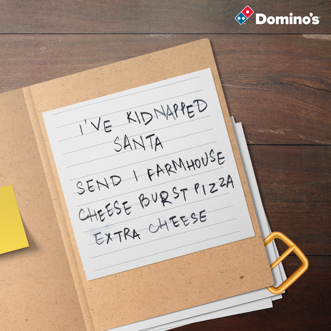 This student campaign titled 'Santa Claus has been kidnapped' was published in India in December, 2021. It was created for the brands: Domino's, Domino’s, and Domino's Pizza, by ad school: Freelance. This Content and Digital media campaign is related to the Confectionery, Snacks and Food industries and contains 1 media asset. It was submitted about 3 years ago by Founder: Pranita Bajoria of Red in the White.