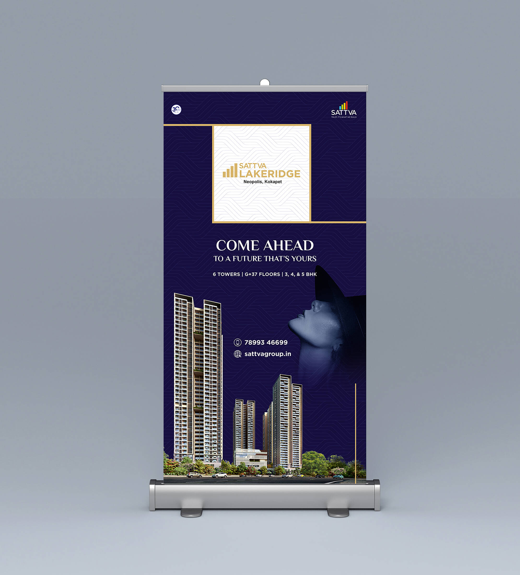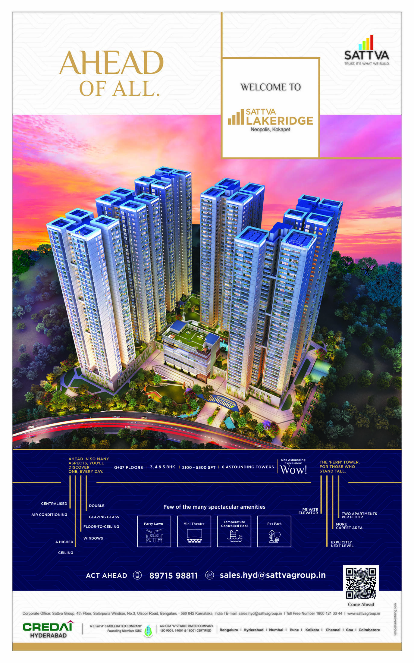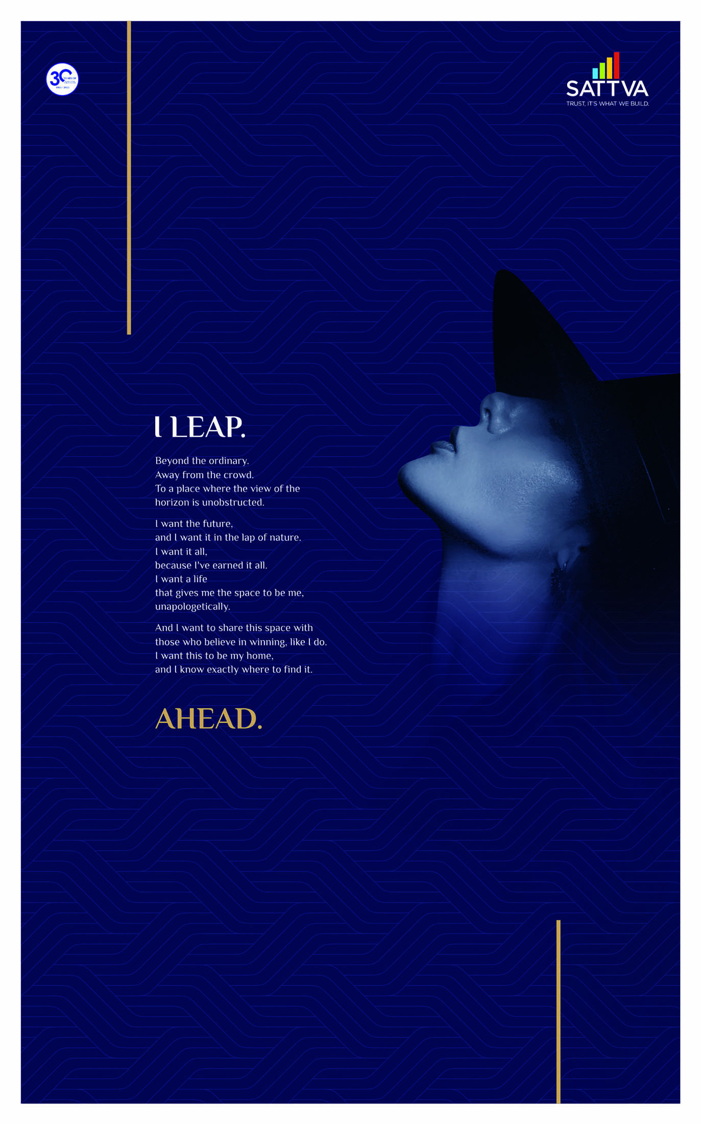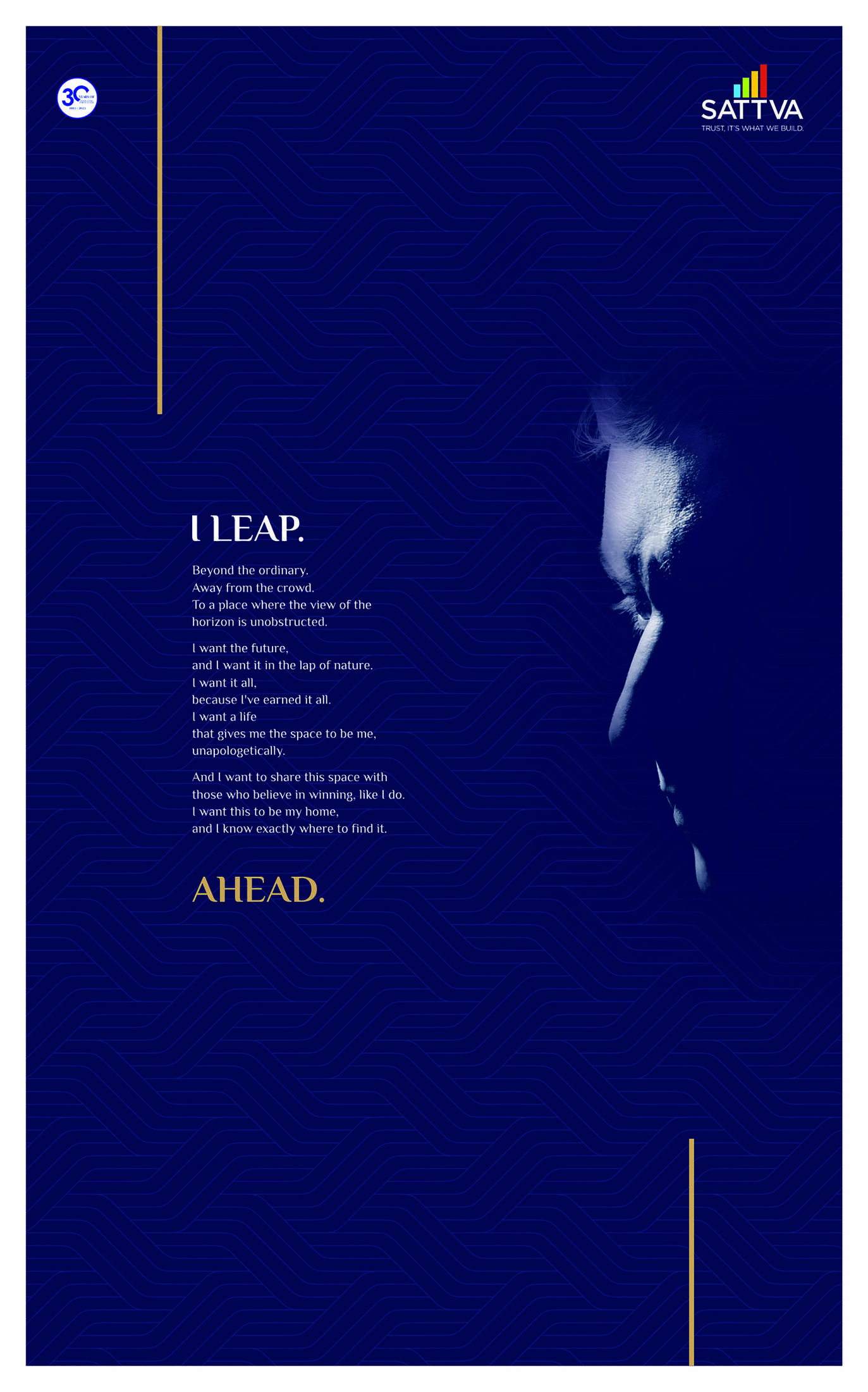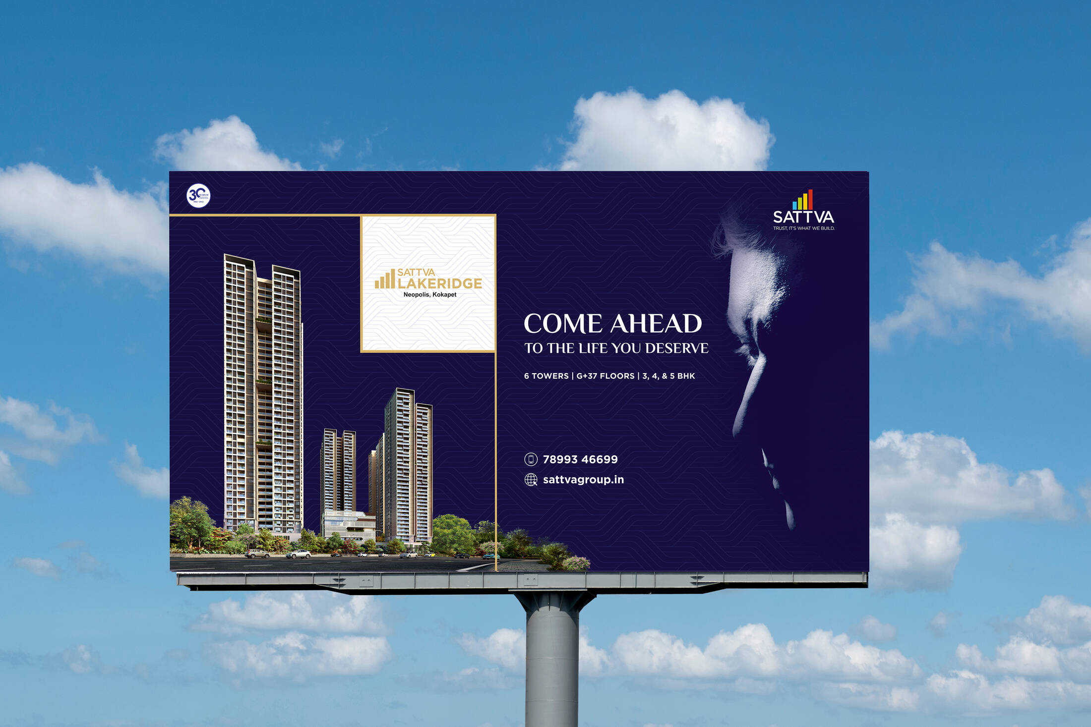 Sattva, a renowned name in Bengaluru real estate, sought to expand their footprint in the residential sector of Hyderabad. For Sattva Lakeridge, the agency undertook extensive planning and conducted a thorough market research. Understanding the importance of attention to detail, we meticulously planned every aspect of the campaign, from the choice of visuals to the strategic placement of advertisements and studying what the competitors were doing. And we came up with AHEAD. Just one word, one idea, one concept, to talk about the mindset of the TG, the exclusivity of the location and the legacy of the Sattva Group. A minimalist, silent but strong approach to make the brand stand out in the crowd.