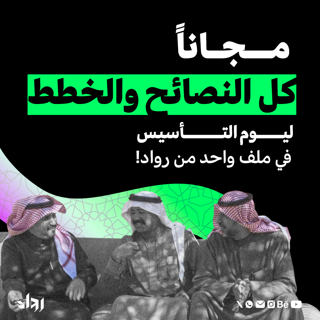 يوم التأسيس قرب... ومستقبل مشروعك يبدأ هنا! كل النصائح والخطط اللي تحتاجها صارت بيدك، وبملف واحد مجاني من "رواد"! لا تفوت الفرصة، حمل الملف الحين من البايو، وخل مشروعك حديث المملكة! - Founding Day is near… and your project's future starts here! All the tips and strategies you need are now in your hands — in one FREE guide from Rawaad! Don’t miss out — download it now from the bio, and let your project become the talk of the Kingdom!