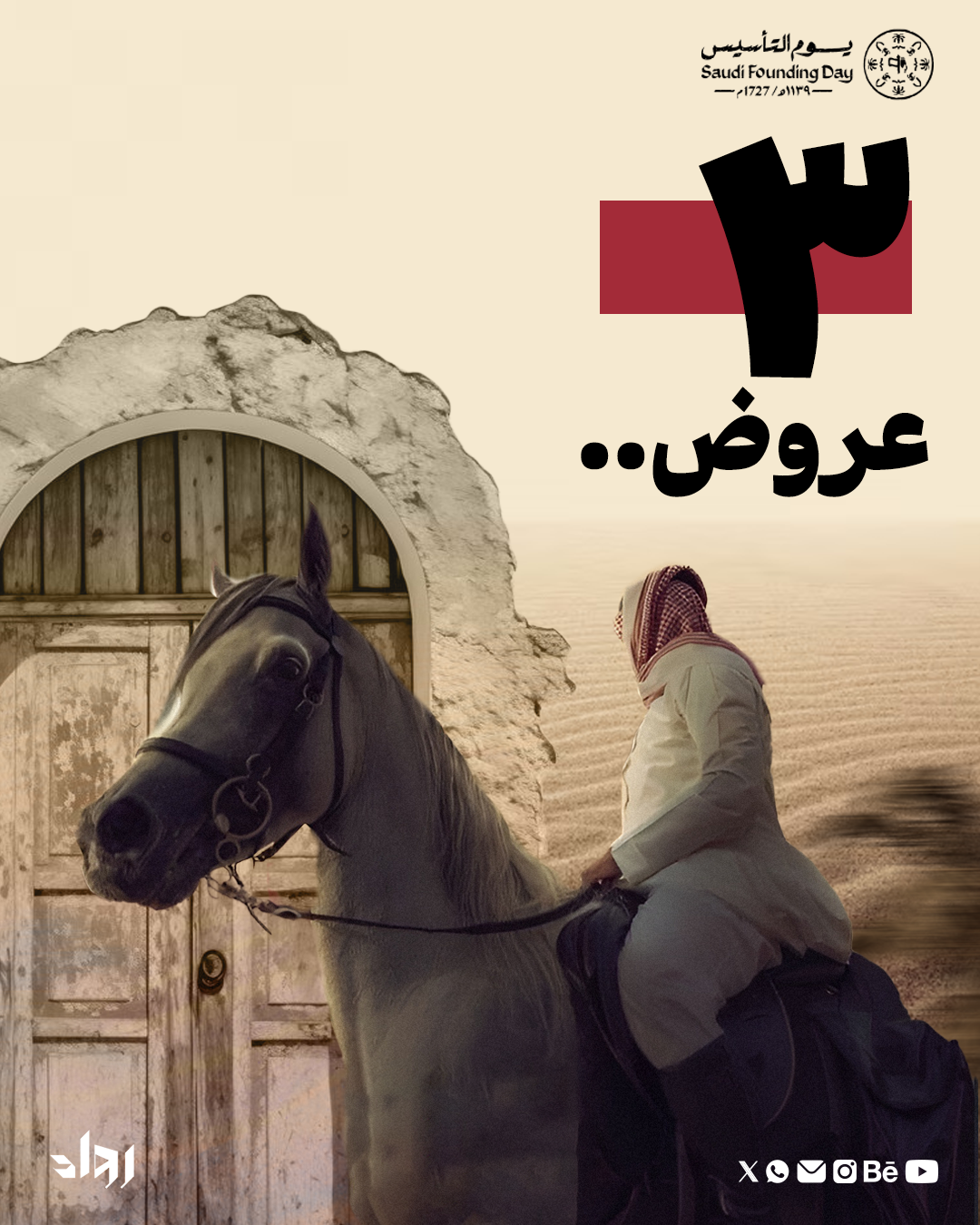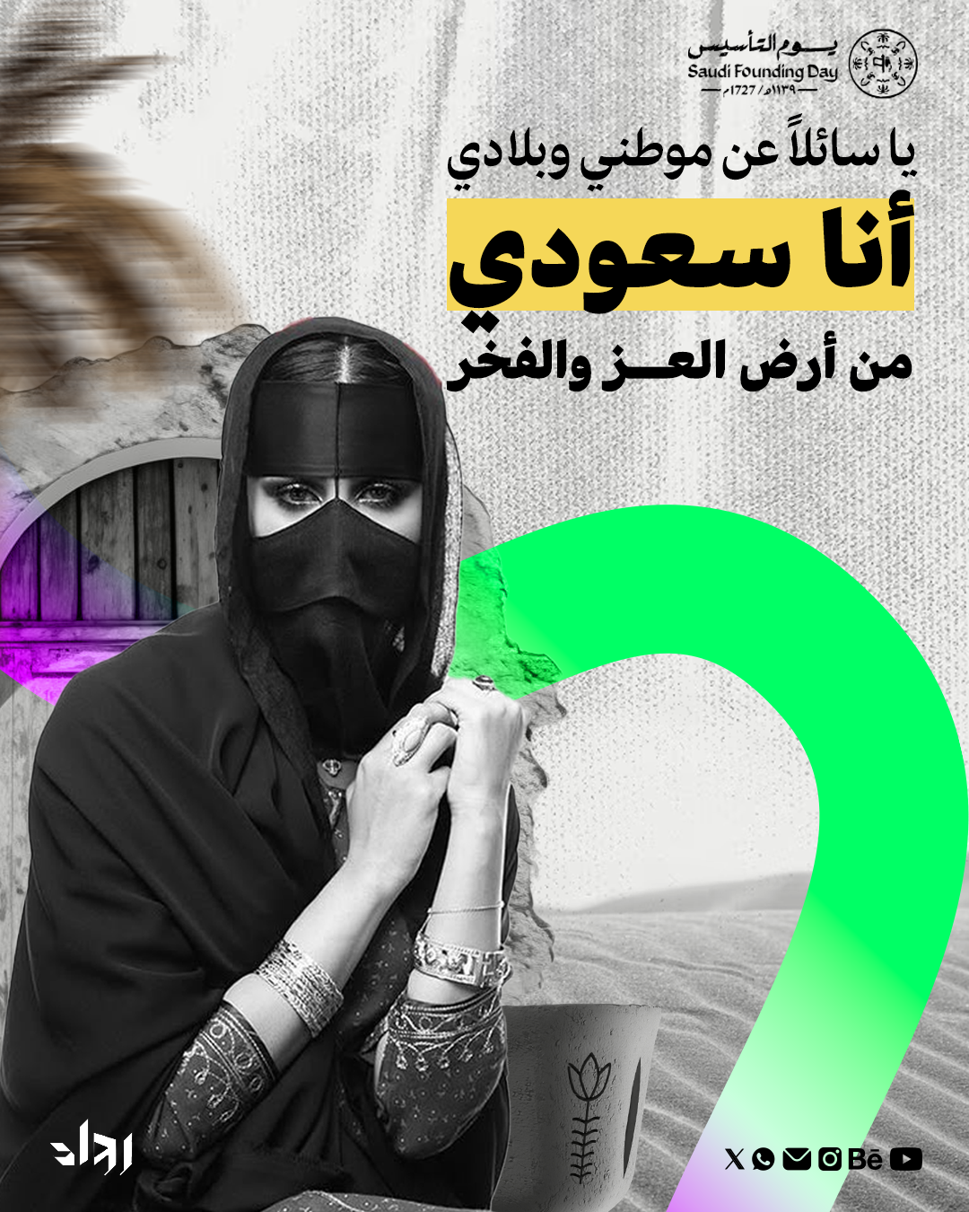 في يوم التأسيس، نحتفي بجذور راسخة امتدت لثلاثة قرون، بحكاية بدأت في الدرعية، واستمرت عبر الأجيال، لترسم حاضرًا مشرقًا ومستقبلًا واعدًا. 🇸🇦✨ ٣ قرون من العز والفخر. ٣ قرون من الوحدة والقوة. ٣ قرون والمملكة تكتب تاريخها بحروف من ذهب. اليوم، نستذكر الماضي بكل تفاصيله، ونعيش الحاضر بكل إنجازاته، ونتطلع لمستقبل يليق بوطن لا يعرف المستحيل. هذي السعودية… وهذا يومنا… وهذا فخرنا اللي ما يزول! - On Founding Day, we honor roots that have stood strong for three centuries — a story that began in Diriyah and carried through generations, shaping a bright present and a future full of promise. 🇸🇦✨ 300 years of pride and dignity. 300 years of unity and strength. 300 years of a Kingdom writing its history in golden ink. Today, we reflect on a rich past, celebrate a thriving present, and look ahead to a future worthy of a nation that knows no limits. This is Saudi Arabia. This is our day. This is our everlasting pride.