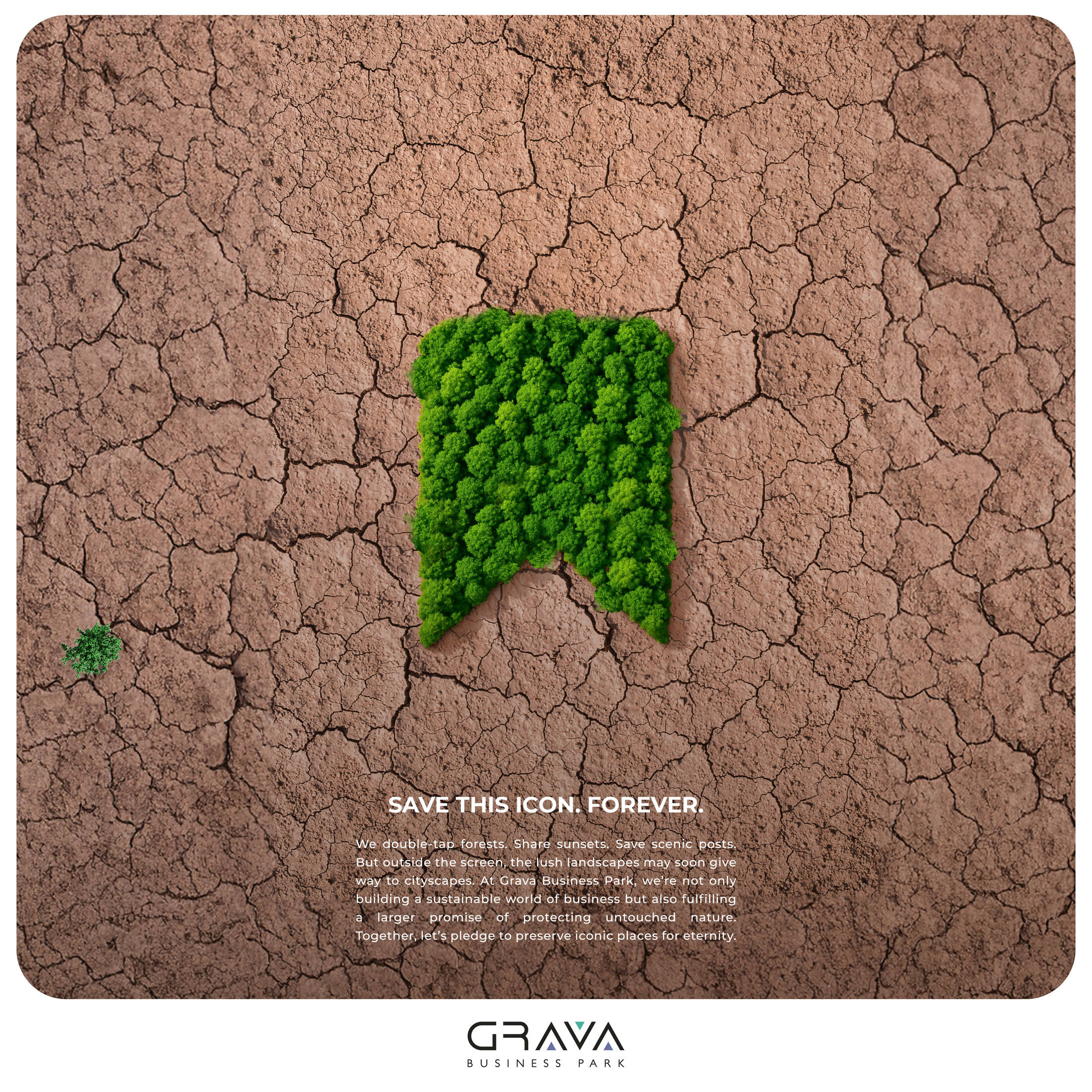 We reimagined the universally recognised ‘save’ icon from social media and gave it new meaning, save nature. The creative featured the iconic symbol recreated with an image of lush green treetops against a backdrop of cracked, barren land. This stark contrast served as a visual metaphor for what the future of our planet could look like if we fail to act. The message was simple yet powerful: save not just posts, but the planet.