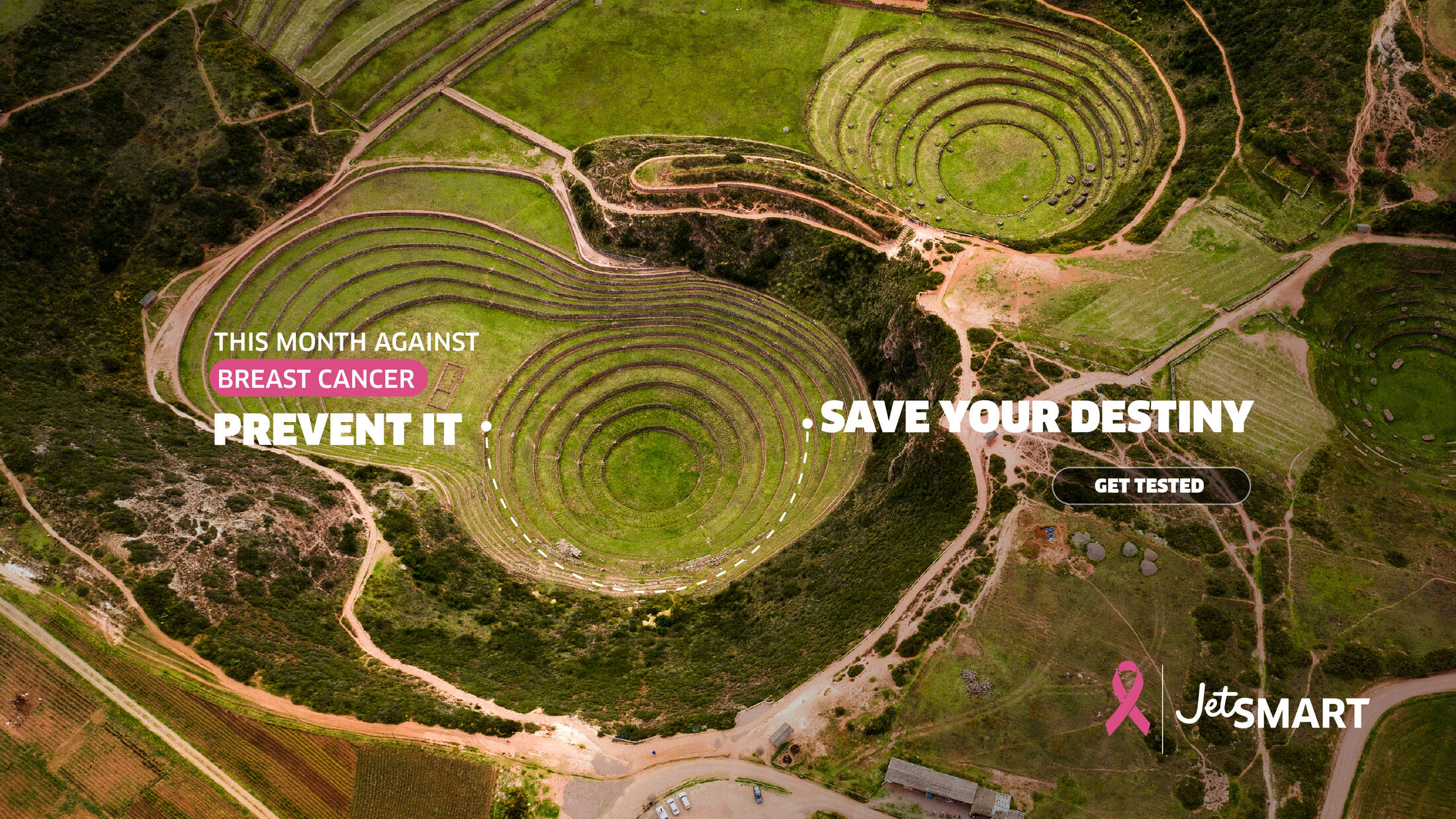 During Breast Cancer against Month, Super and JetSMART Airlines turned their travel destinations into a call for prevention by using aerial views of landscapes that resemble the shape of breasts.