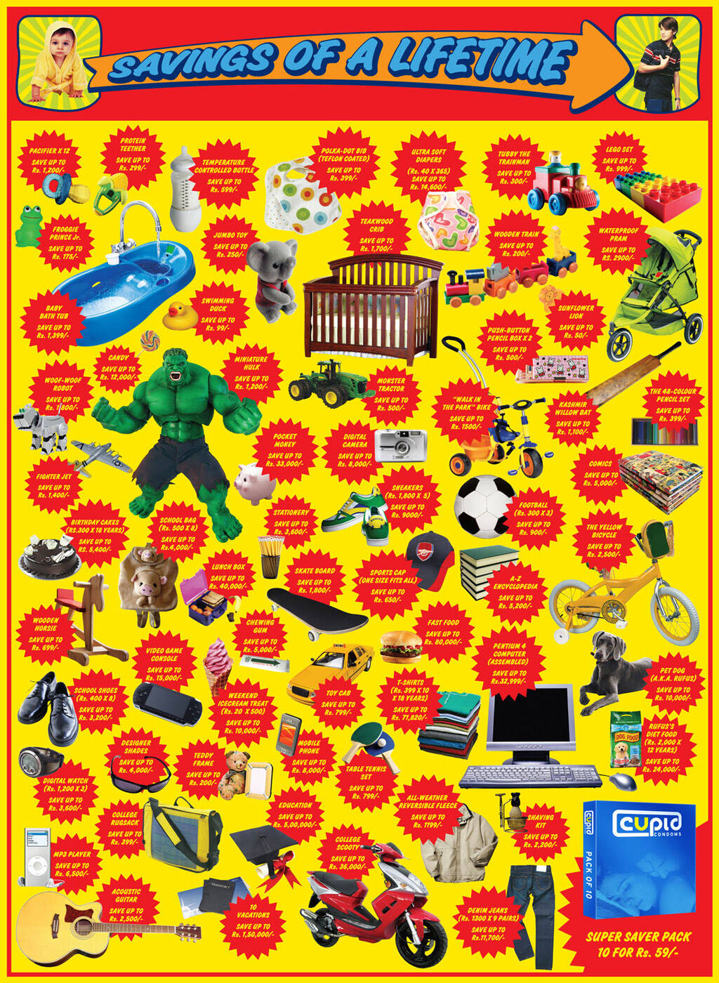 This professional campaign titled 'Savings' was published in India in May, 2009. It was created for the brand: Cupid, by ad agency: Publicis. This Print medium campaign is related to the Health industry and contains 1 media asset. It was submitted over 16 years ago.