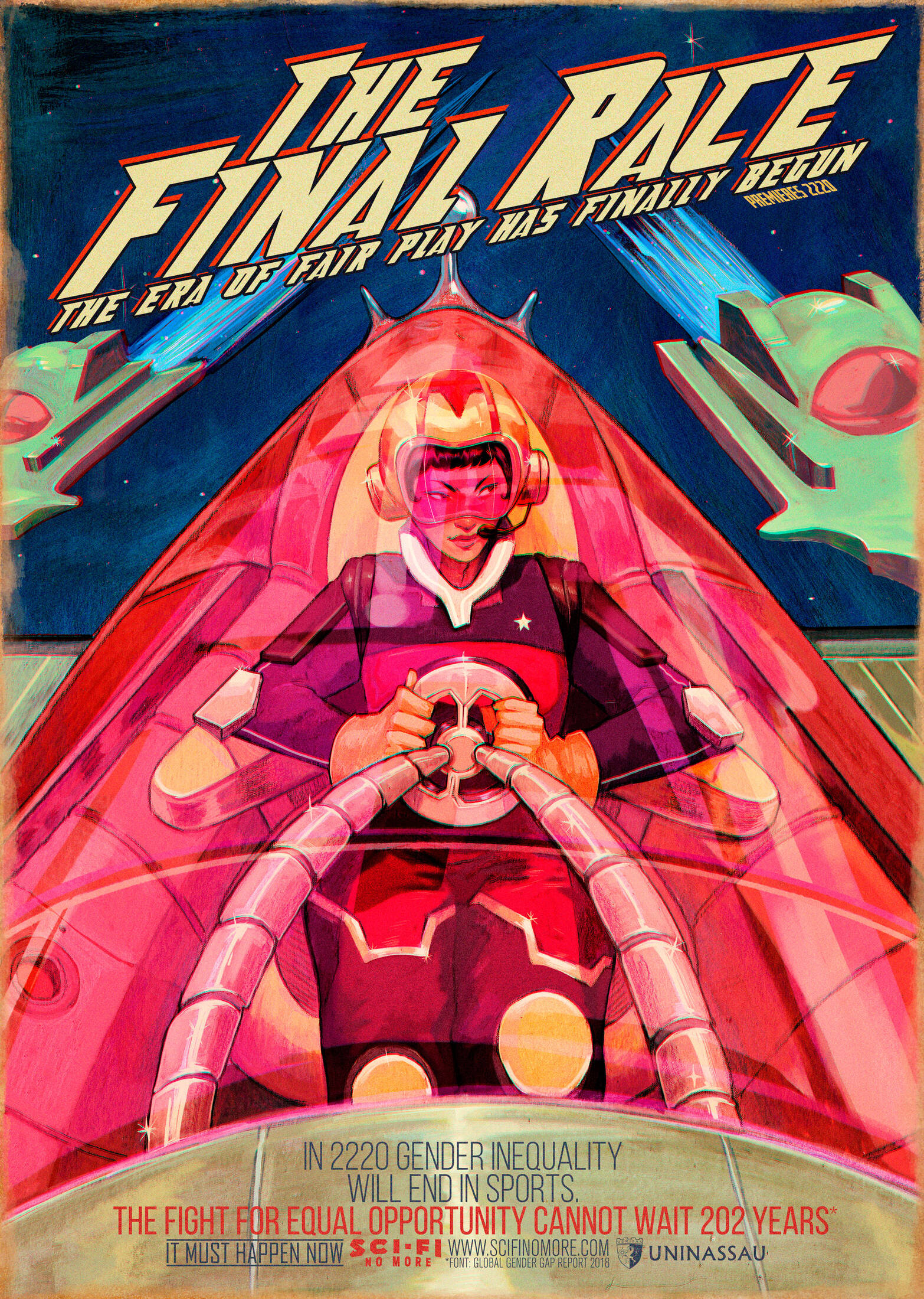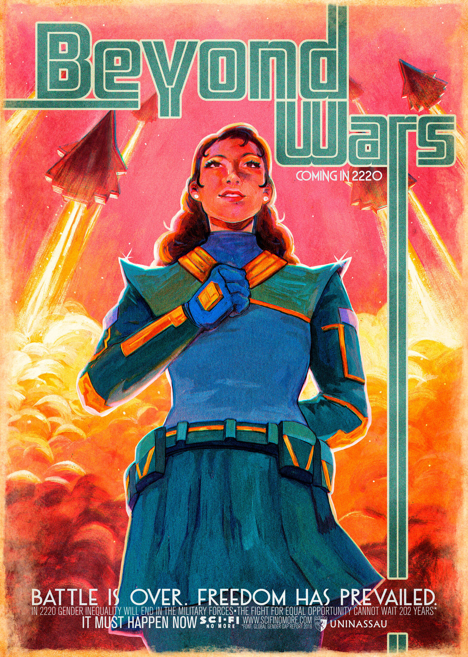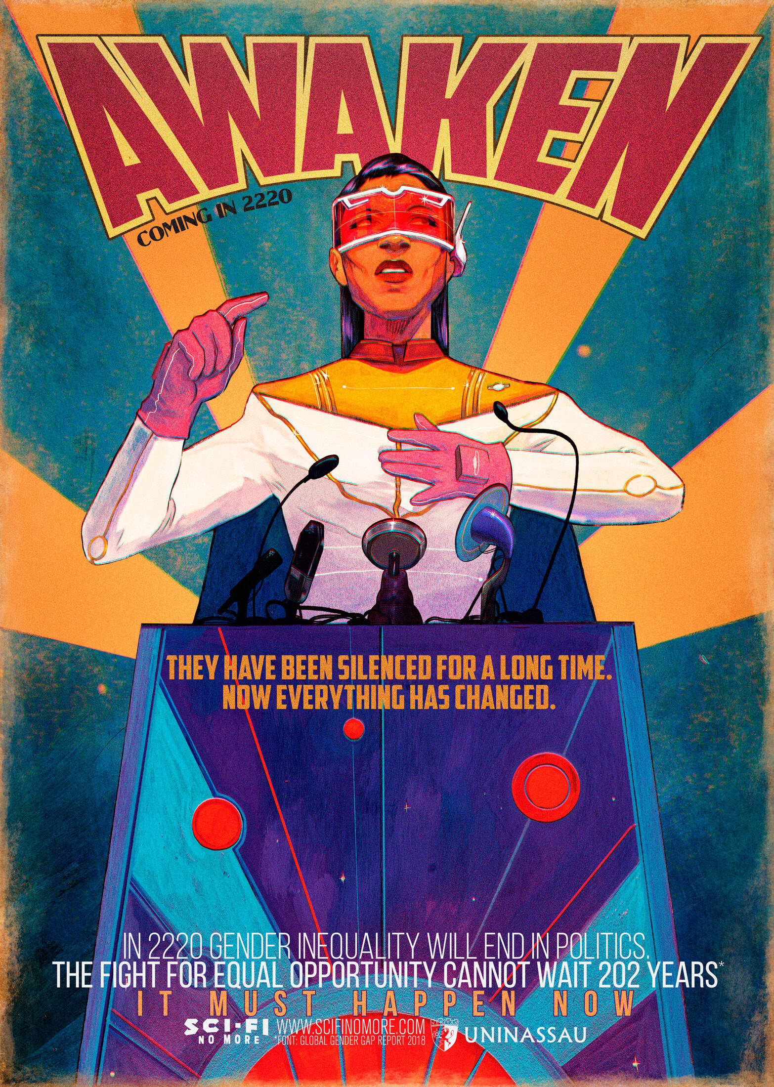 202 years. This is how much time that the World Economic Forum has estimated for the end of gender inequality in the job market. That's why we created movie posters inspired by retrofuturist aesthetics with female protagonists in leadership positions to show that the conquest of equal opportunities can not be considered science fiction but reality.