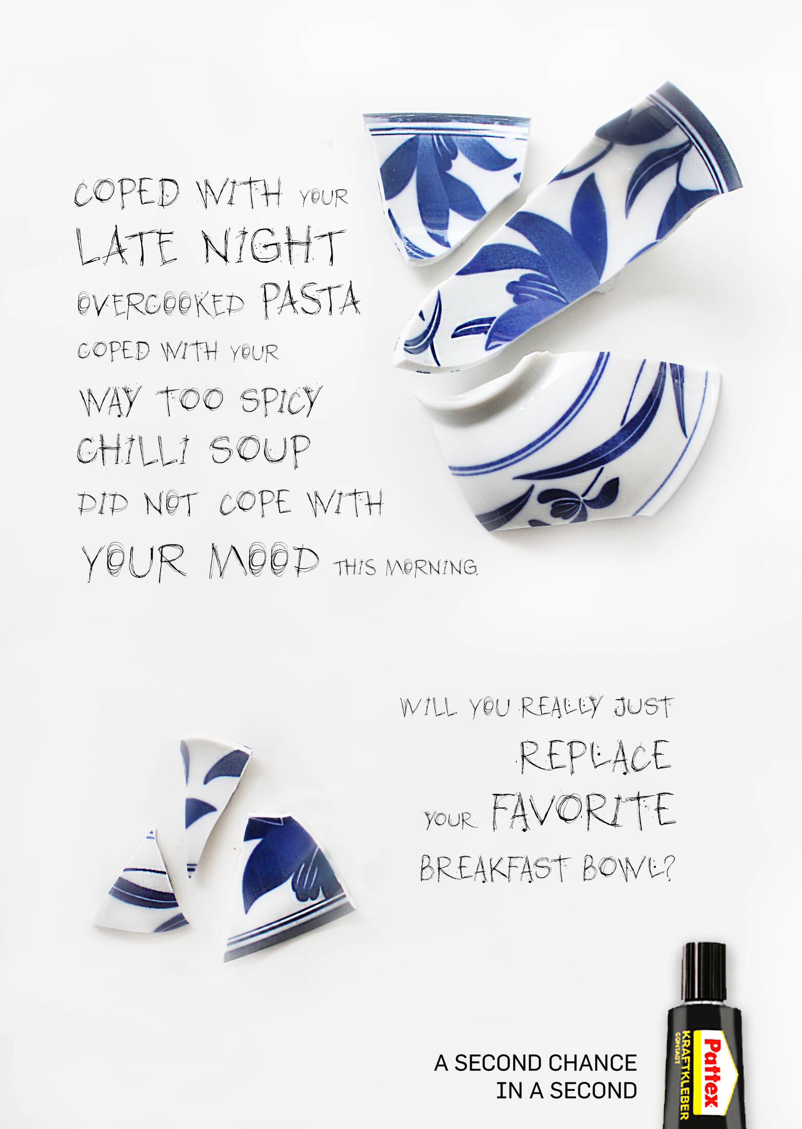 This student campaign titled 'Second Chance - Rex, Second Chance - Morning Mood, Second...' was published in Germany in September, 2017. It was created for the brand: Pattex, by ad school: Miami Ad School. This Print medium campaign is related to the Office Equipment industry and contains 3 media assets. It was submitted almost 8 years ago.