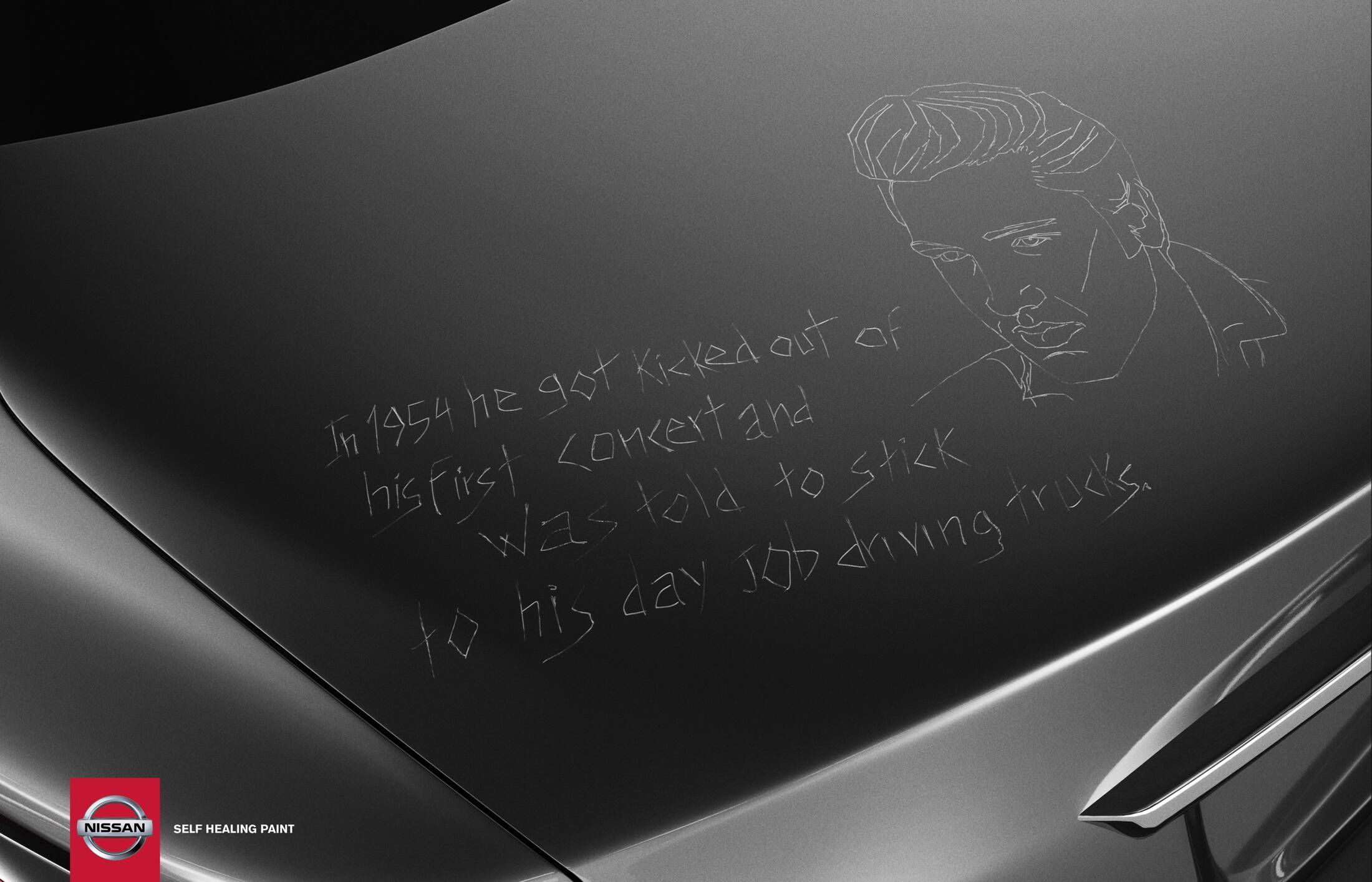 This professional campaign titled 'Self healing stories - Elvis, Self healing stories - Robe...' was published in United Arab Emirates in November, 2014. It was created for the brand: Nissan, by ad agency: TBWA. This Print medium campaign is related to the Automotive and Personal Transportation industry and contains 3 media assets. It was submitted over 10 years ago.