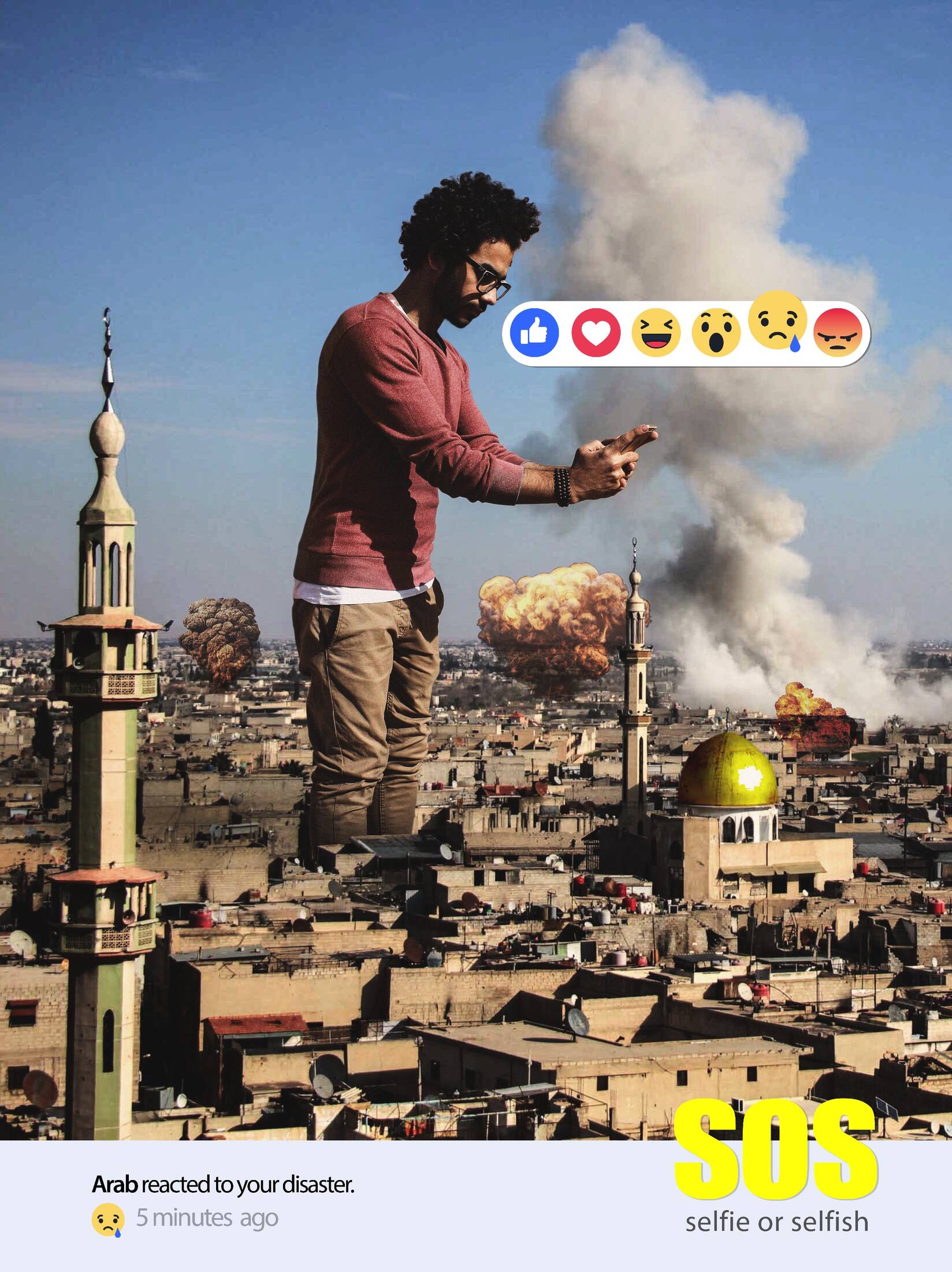 This student campaign titled 'Selfie or Selfish' was published in Egypt in June, 2018. It was created for the brand: Arab Reaction to their Brothers in Syria, by ad school: Faculty of Applied Arts. This Digital medium campaign is related to the Public Interest industry and contains 3 media assets. It was submitted over 7 years ago.
