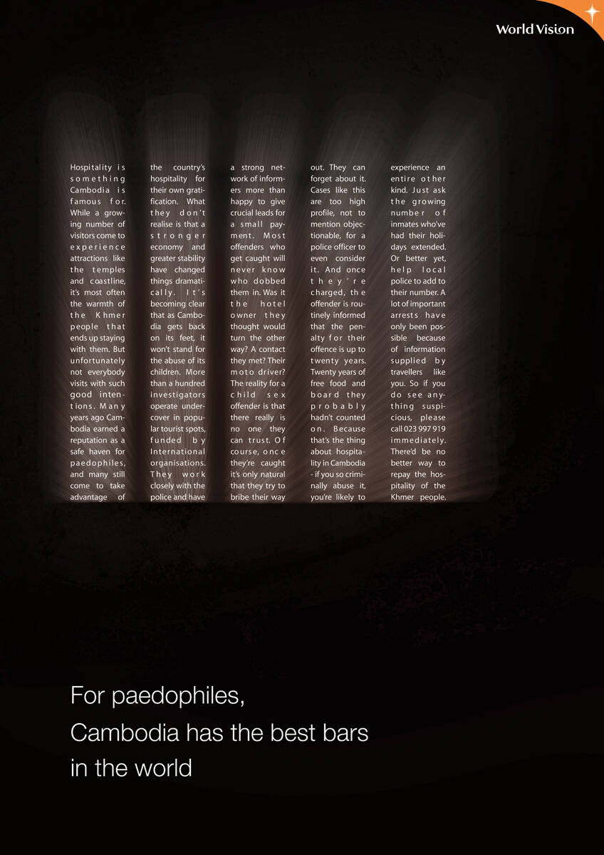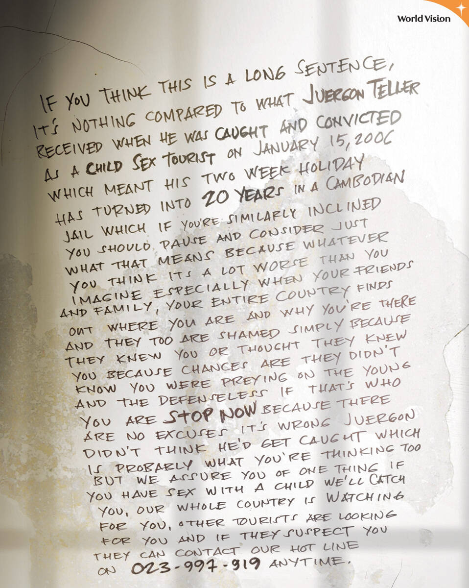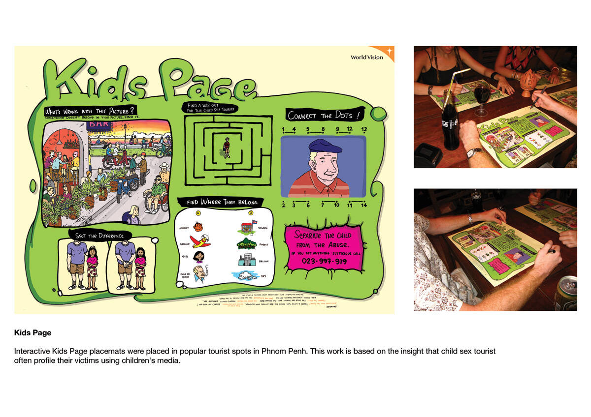 This professional campaign titled 'Sentence, Bars, Do disturb, Kids page' was published in Cambodia in December, 2007. It was created by ad agency: BatesAsia 141. This Print medium campaign is related to the Public Interest industry and contains 4 media assets. It was submitted almost 18 years ago.