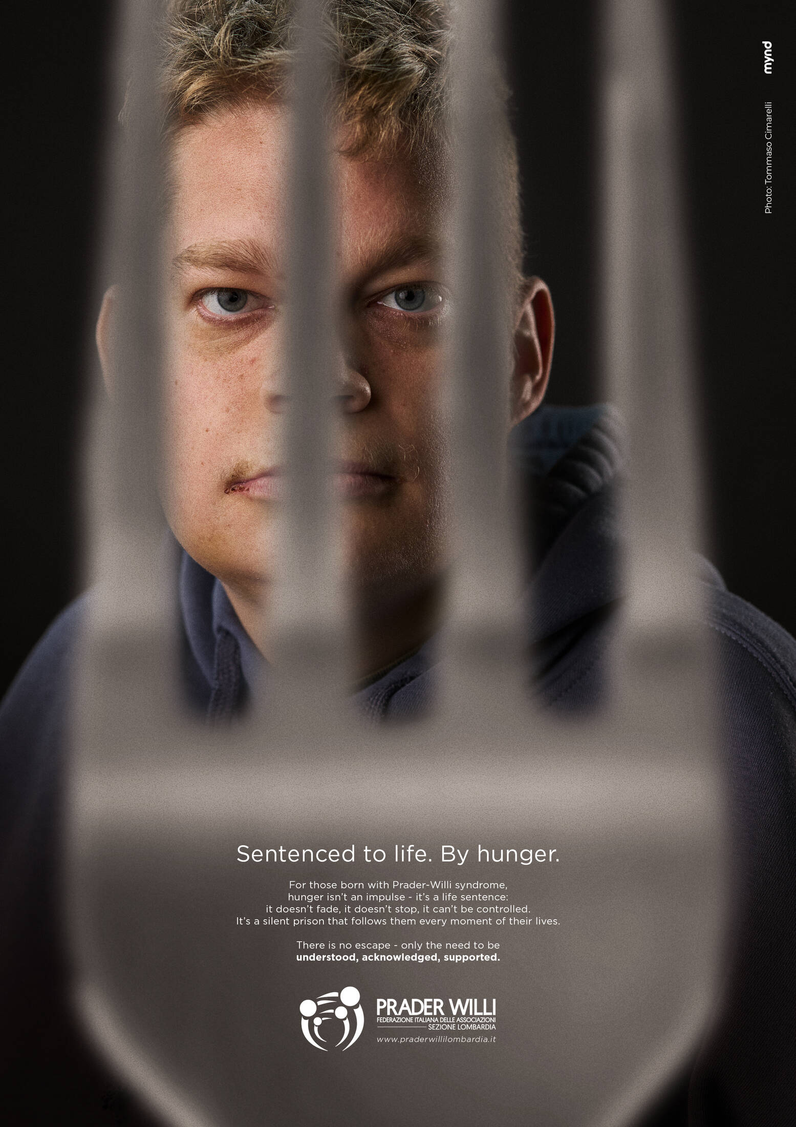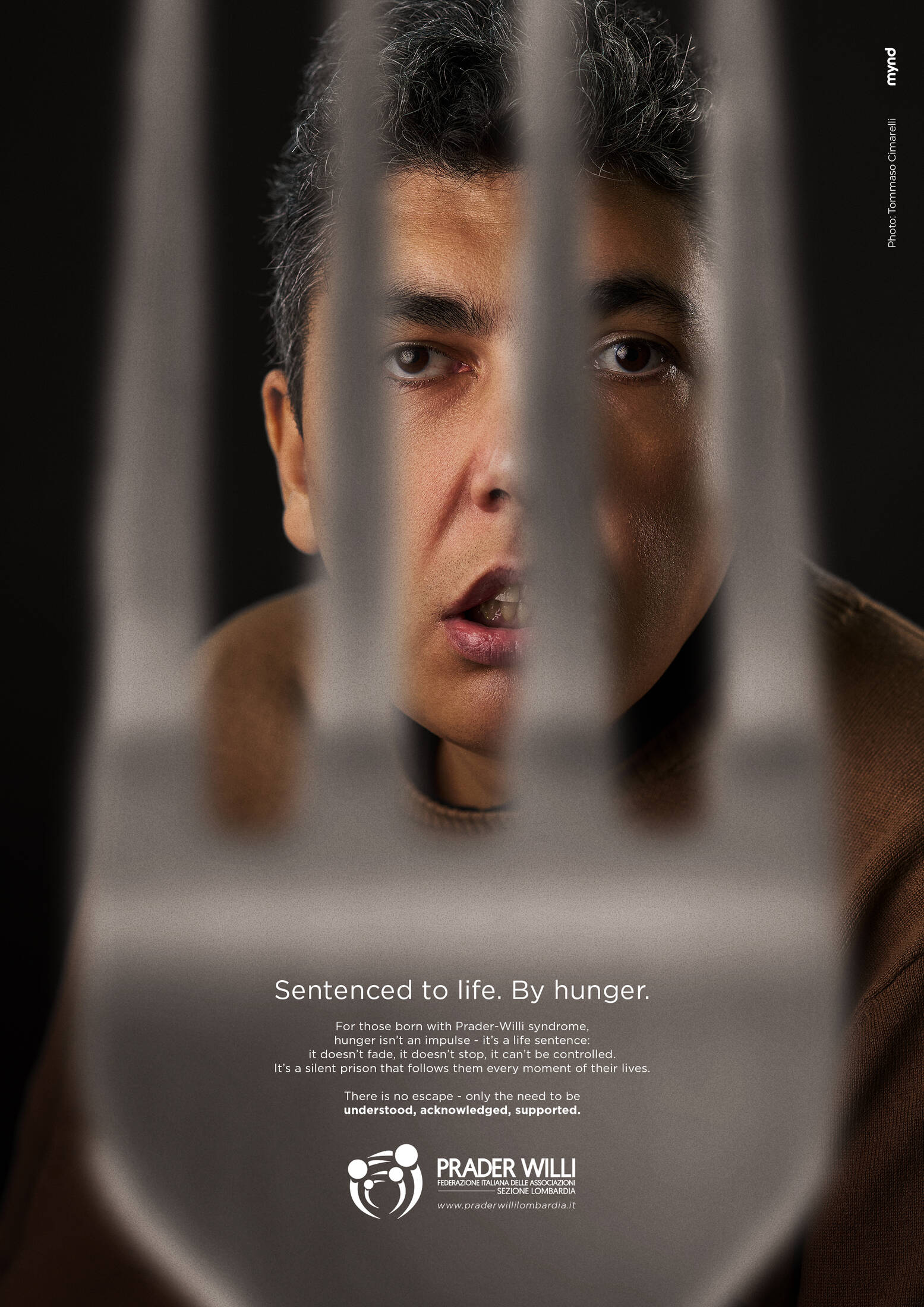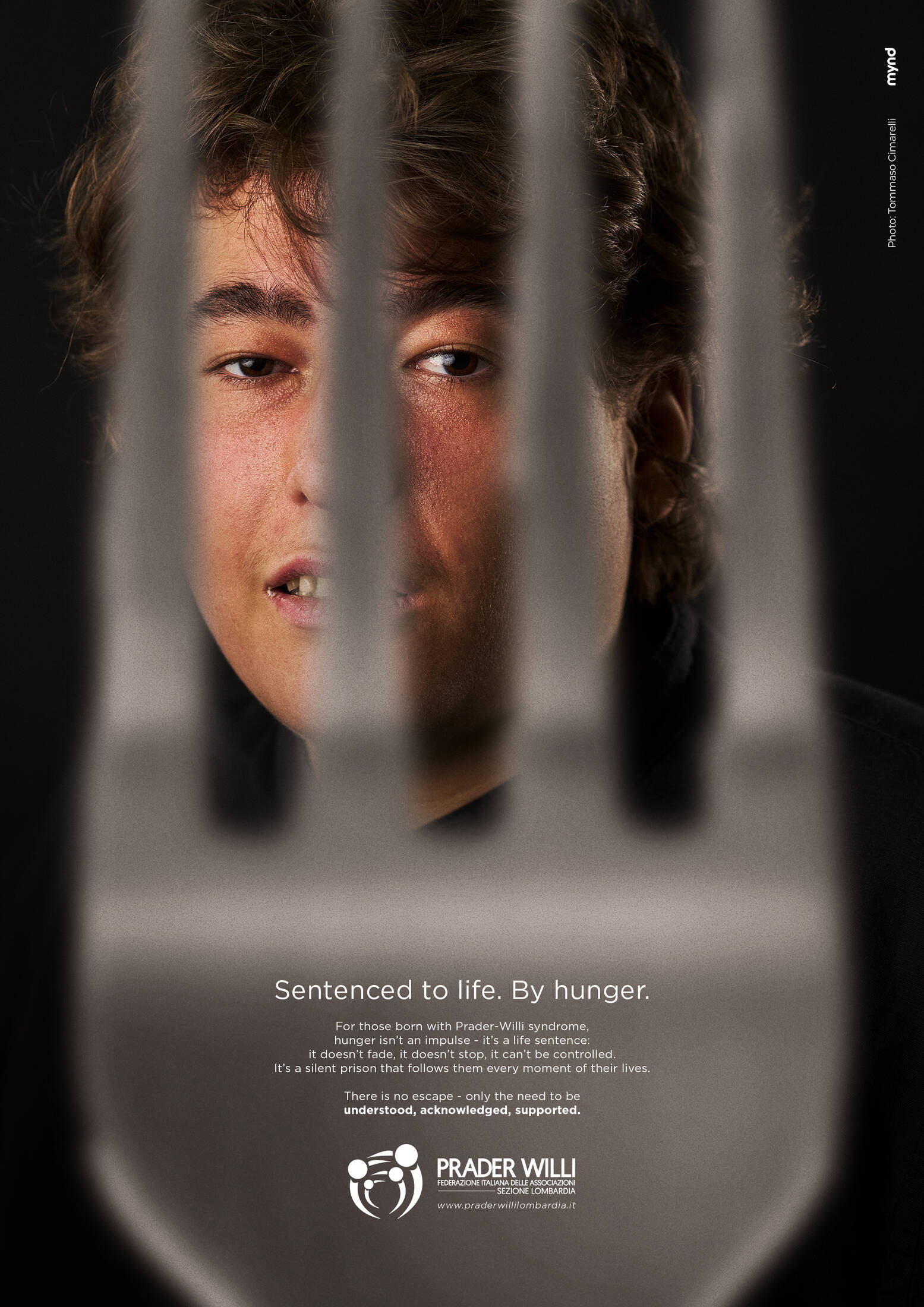 This professional campaign titled 'Sentenced to life. By hunger.' was published in Italy in December, 2025. It was created for the brand: Prader Willi Association, by ad agency: Mynd. This Print medium campaign is related to the Public Interest industry and contains 5 media assets. It was submitted about 2 months ago by Creative Director: Roberto Ferrario of Mynd.