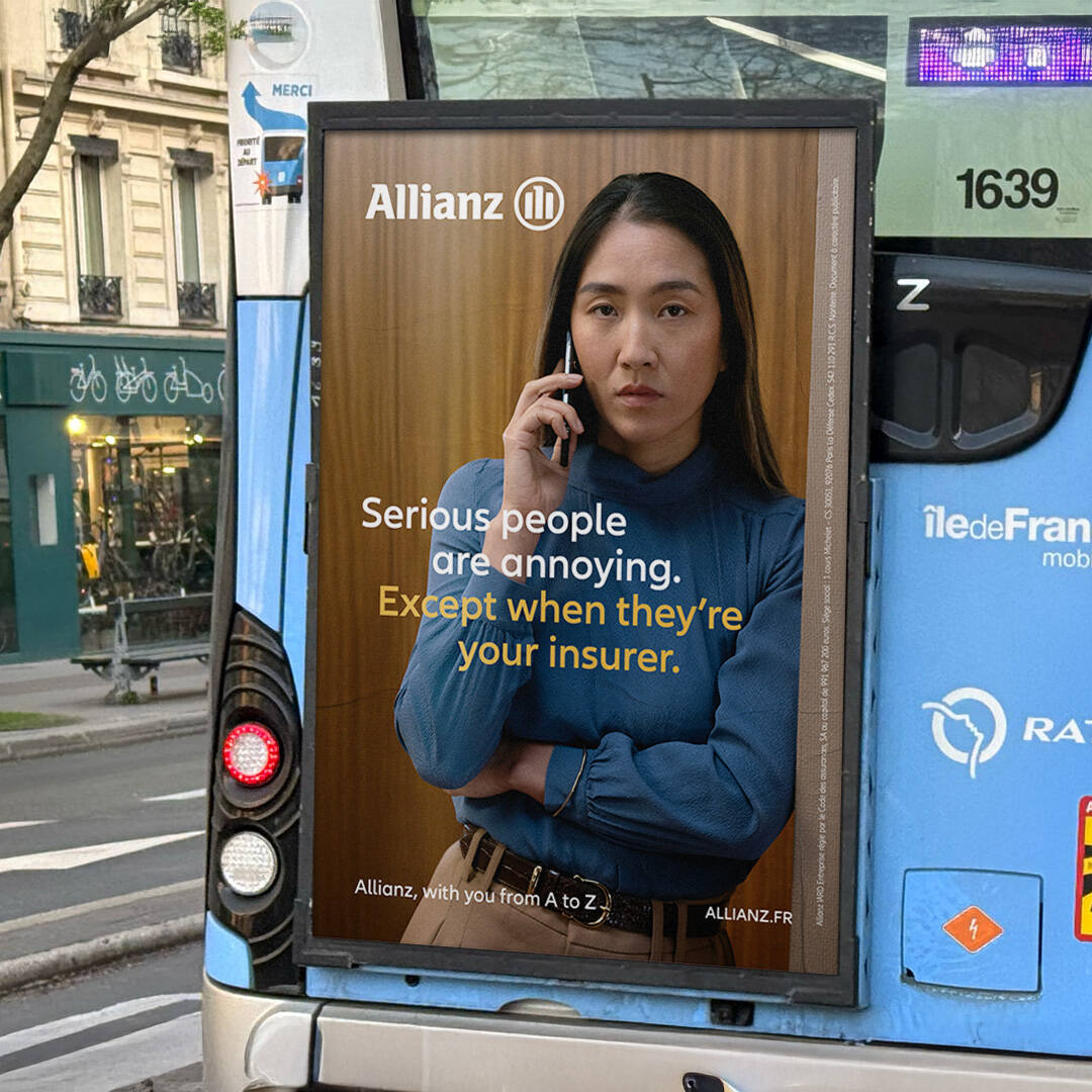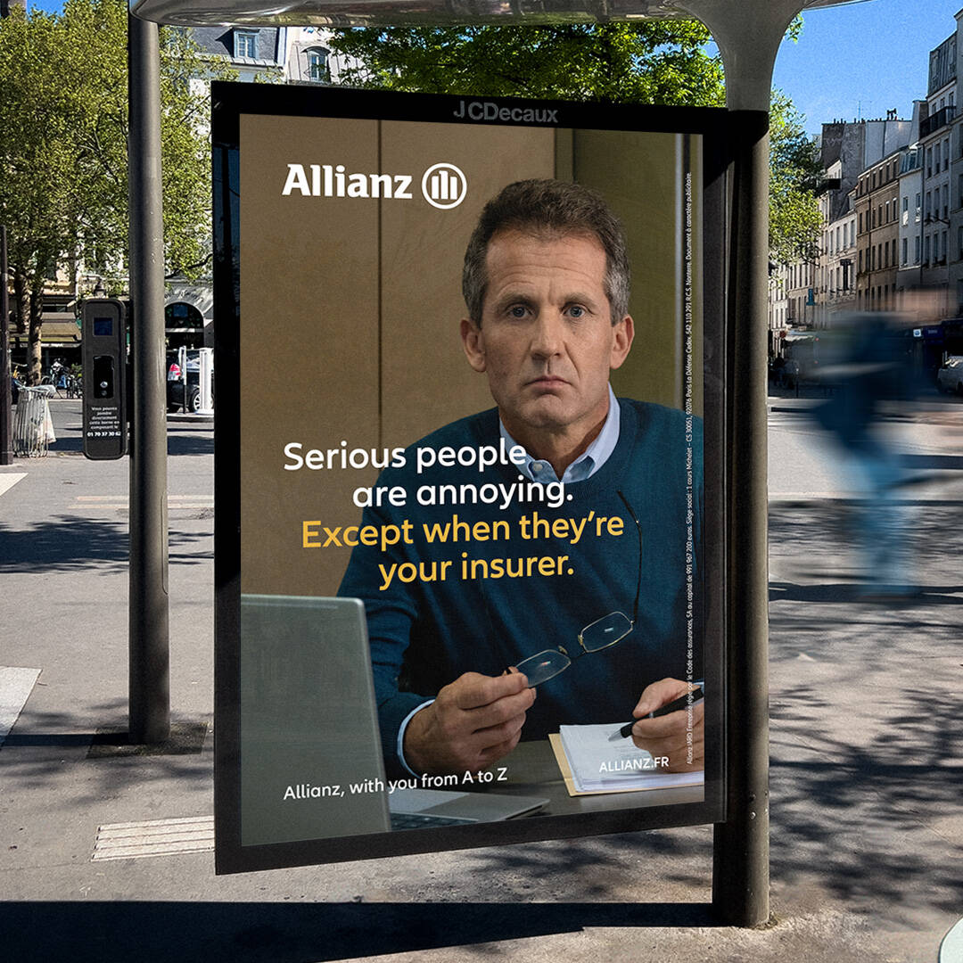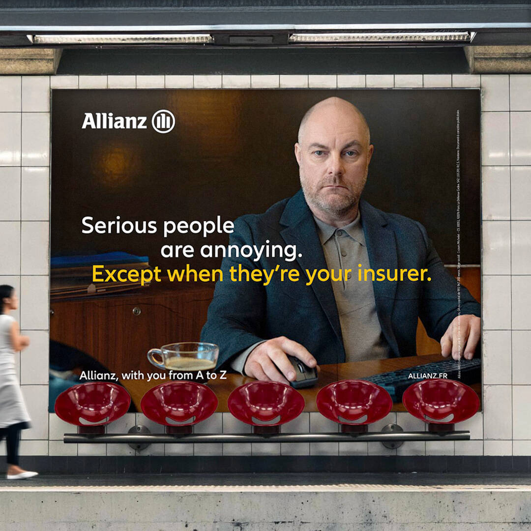 This professional campaign titled 'Serious people are annoying. Except when it comes from Allianz.' was published in France in January, 2026. It was created for the brand: Allianz France, by ad agency: Buzzman. This Film, Integrated, and OOH Outdoor media campaign is related to the Insurance industry and contains 5 media assets. It was submitted 12 minutes ago.