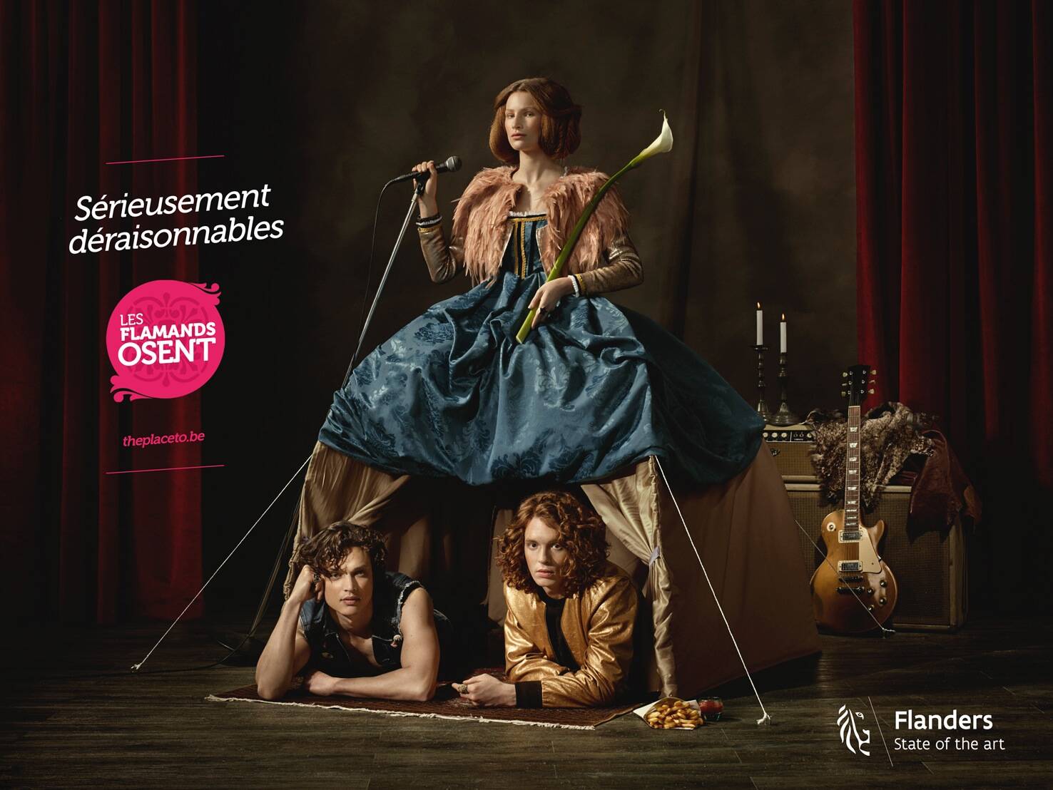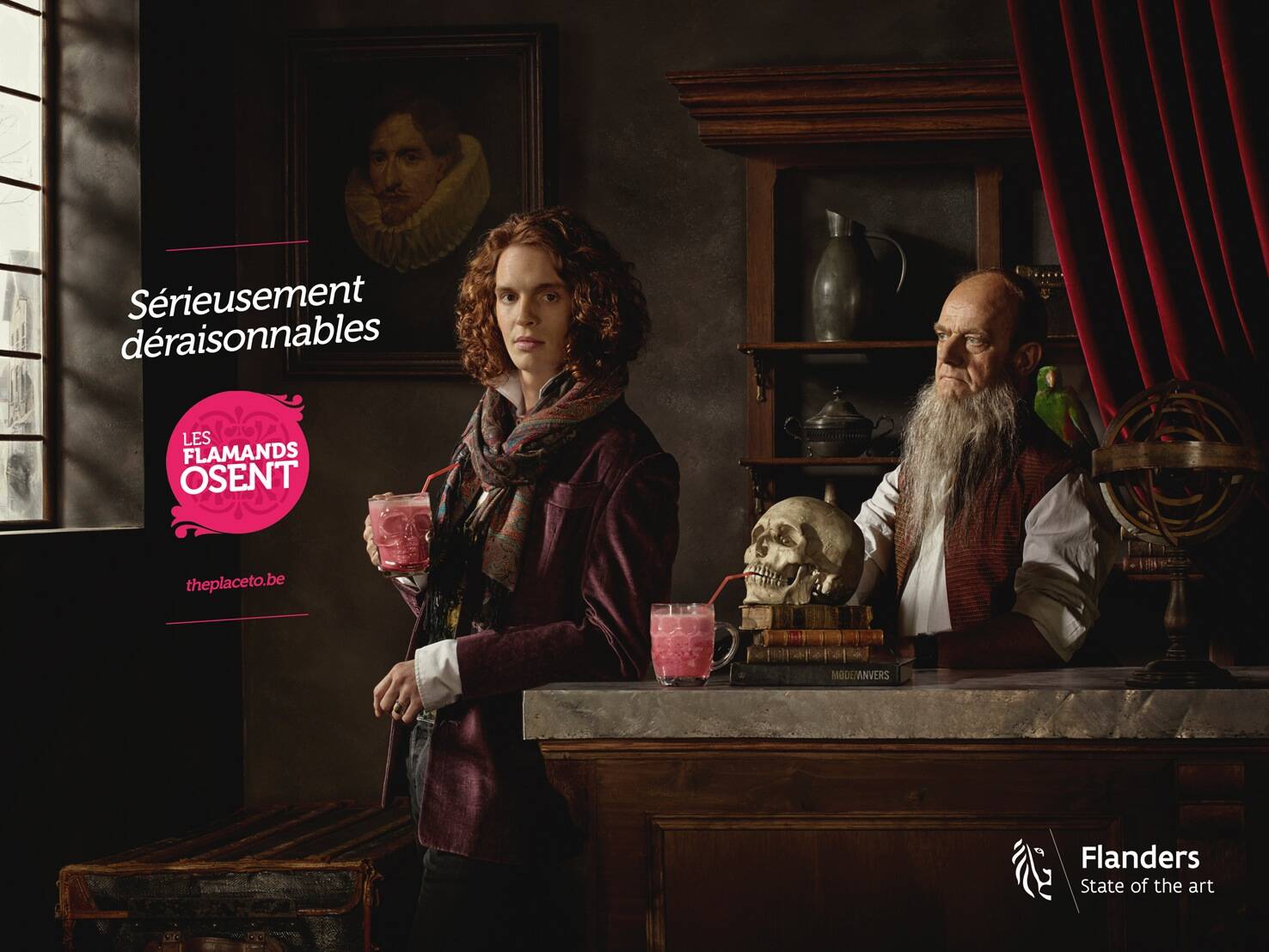 "Les flamants osent" : Beyond its literal meaning "Les Flamands osent" play on words as it both refer to "Flemings dare" and "Pink Flamingo" in French.