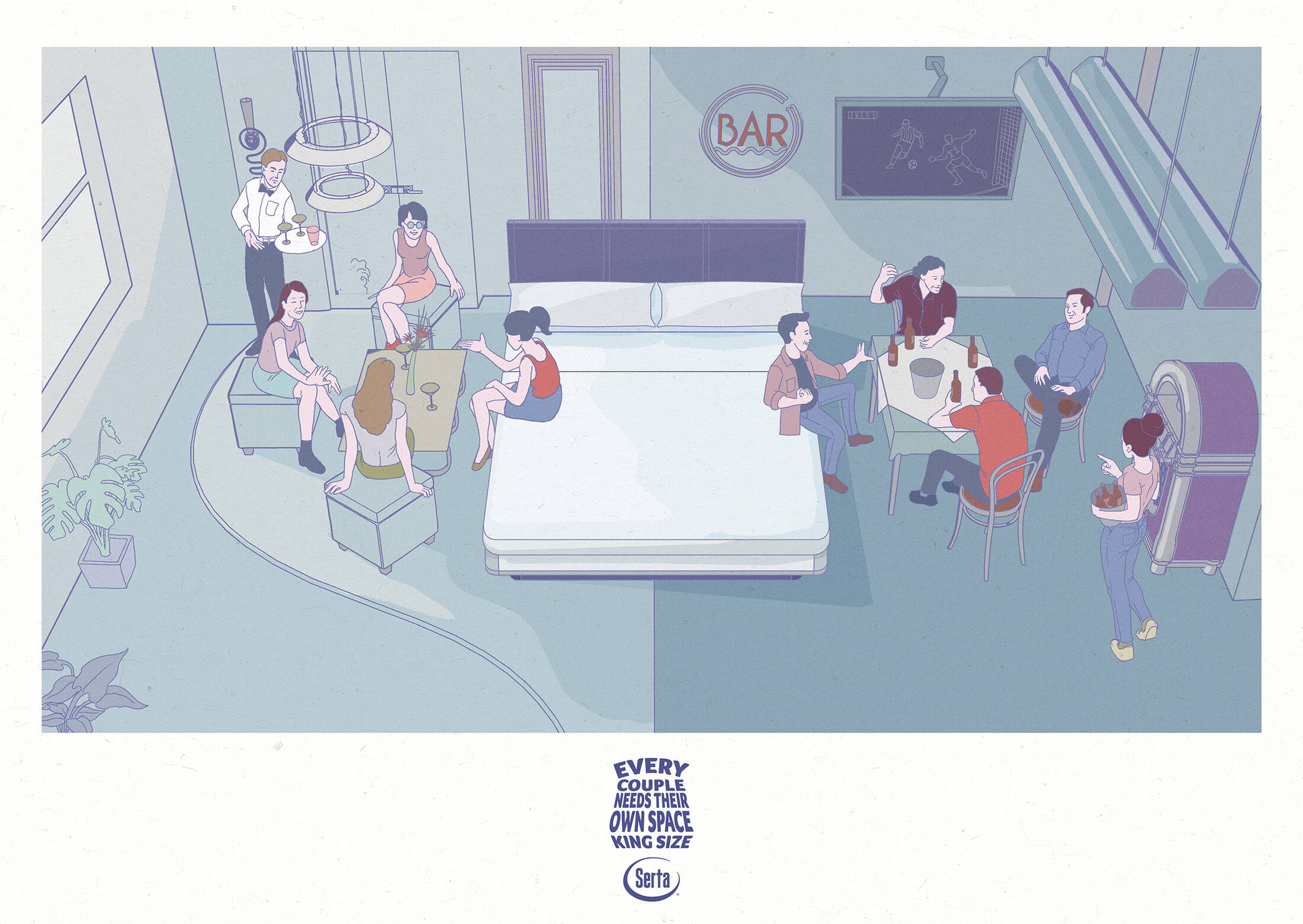 This professional campaign titled 'Serta Lounge - Bar' was published in Honduras in May, 2017. It was created for the brand: Serta, by ad agency: Saatchi & Saatchi. This Print medium campaign is related to the House, Garden industry and contains 1 media asset. It was submitted over 8 years ago.