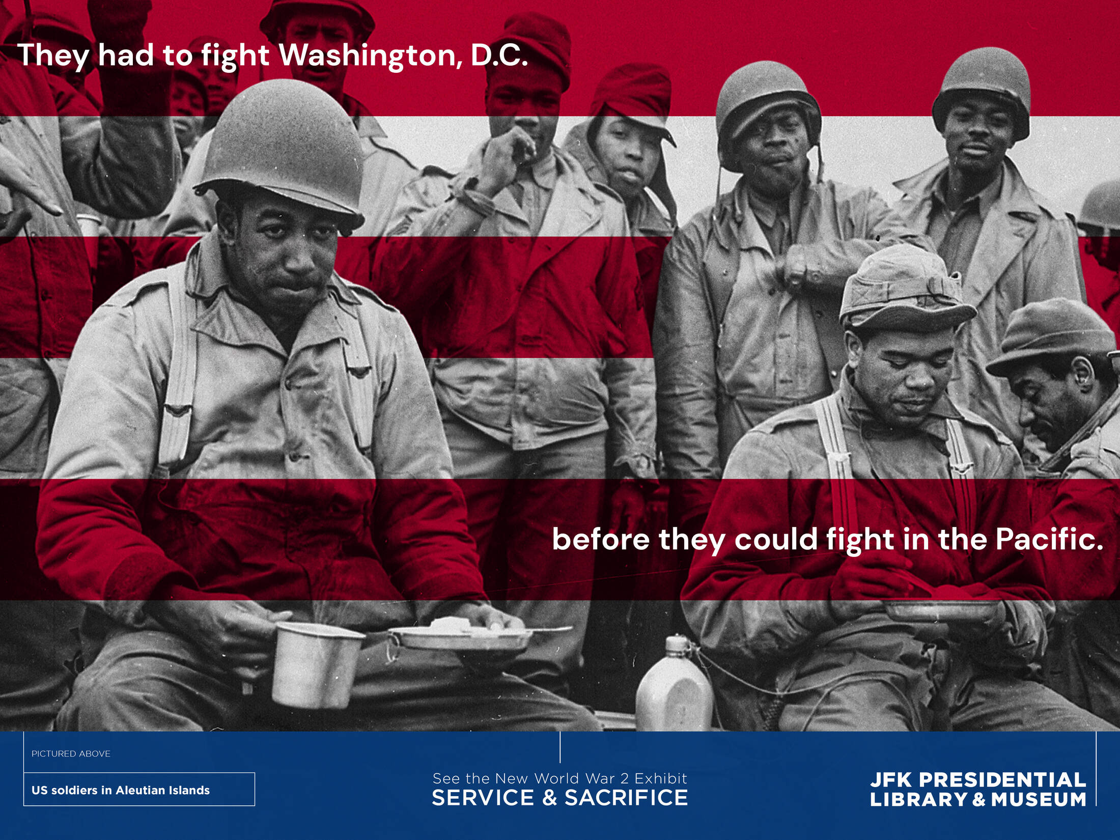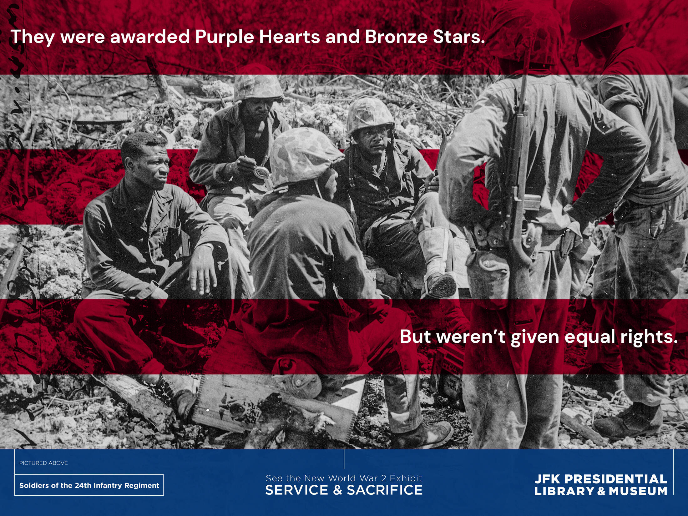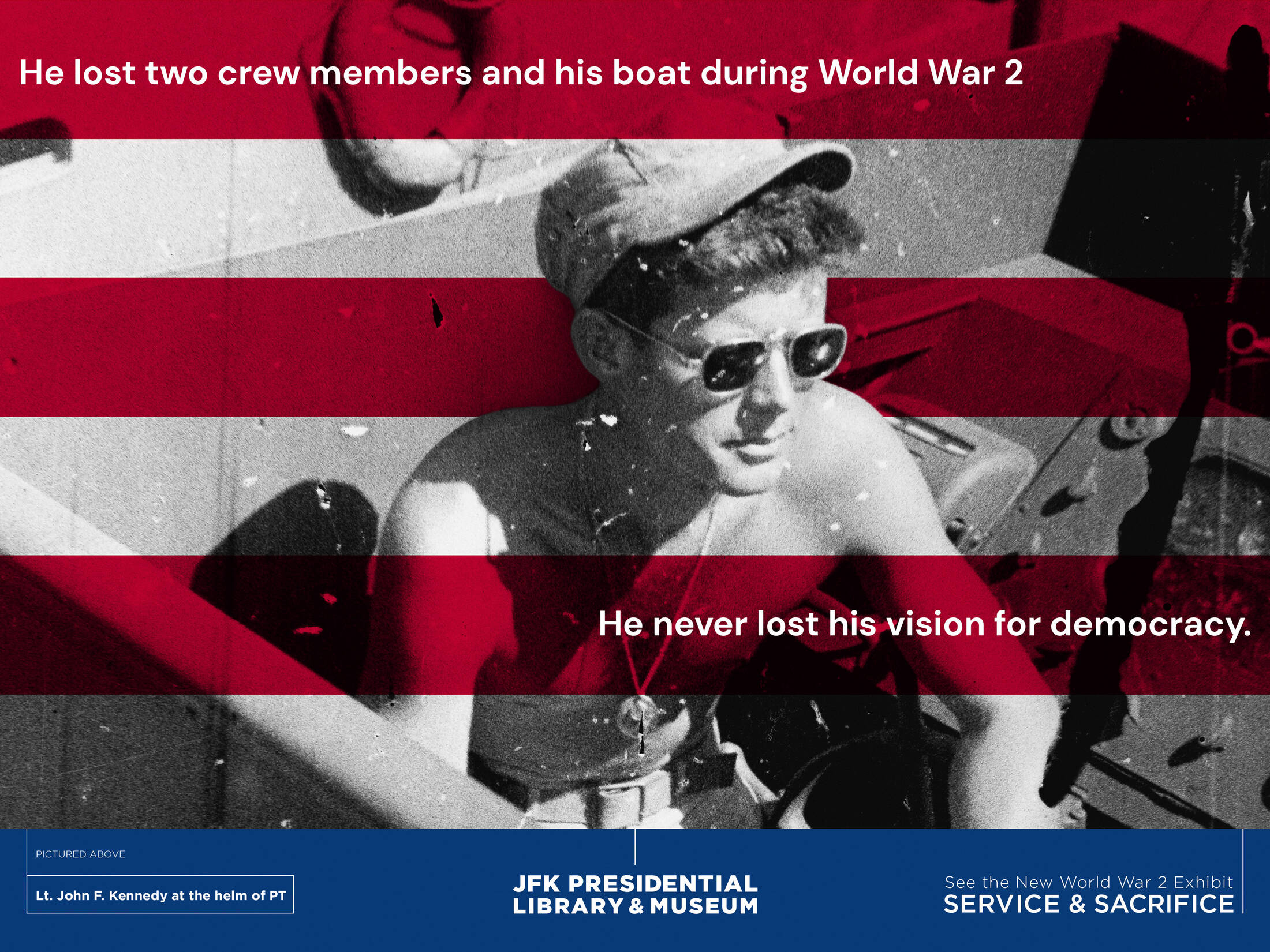 Service and Sacrifice offers personal glimpses of a few of the Americans who served in World War II, including members of the Kennedy family and the untold stories of historically marginalized communities, including people of color and women, and how they relate to today.