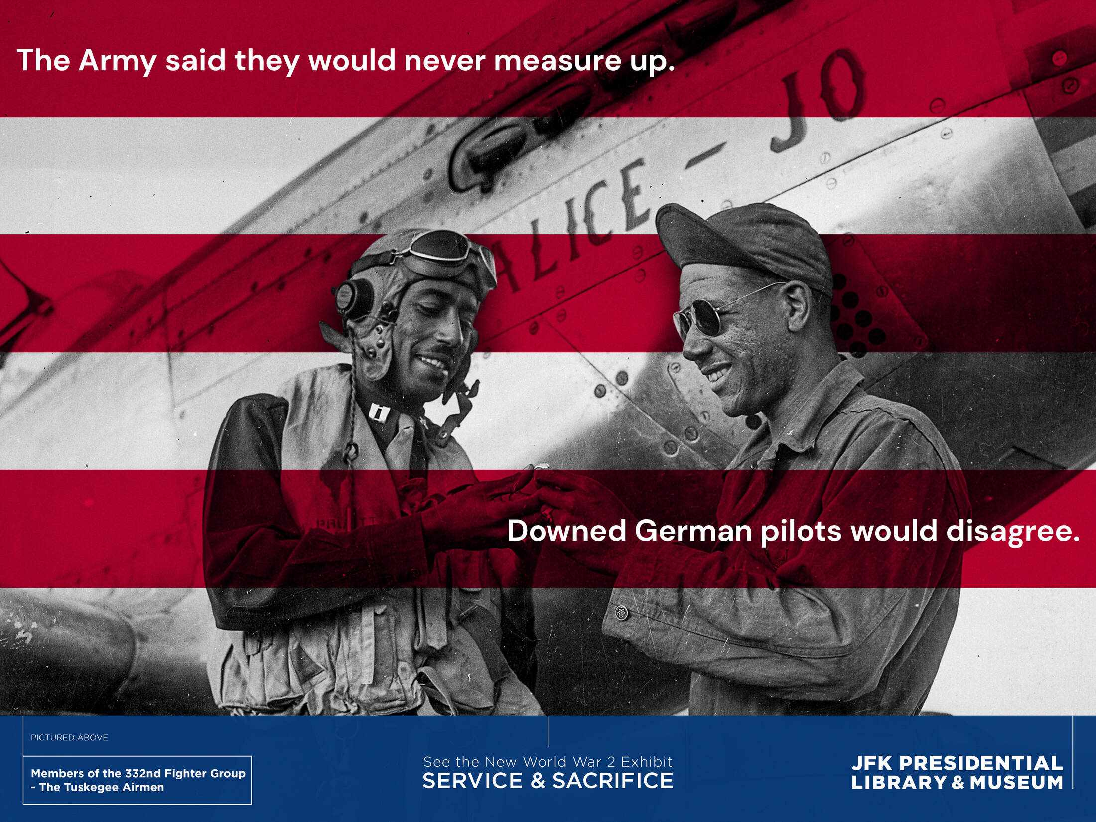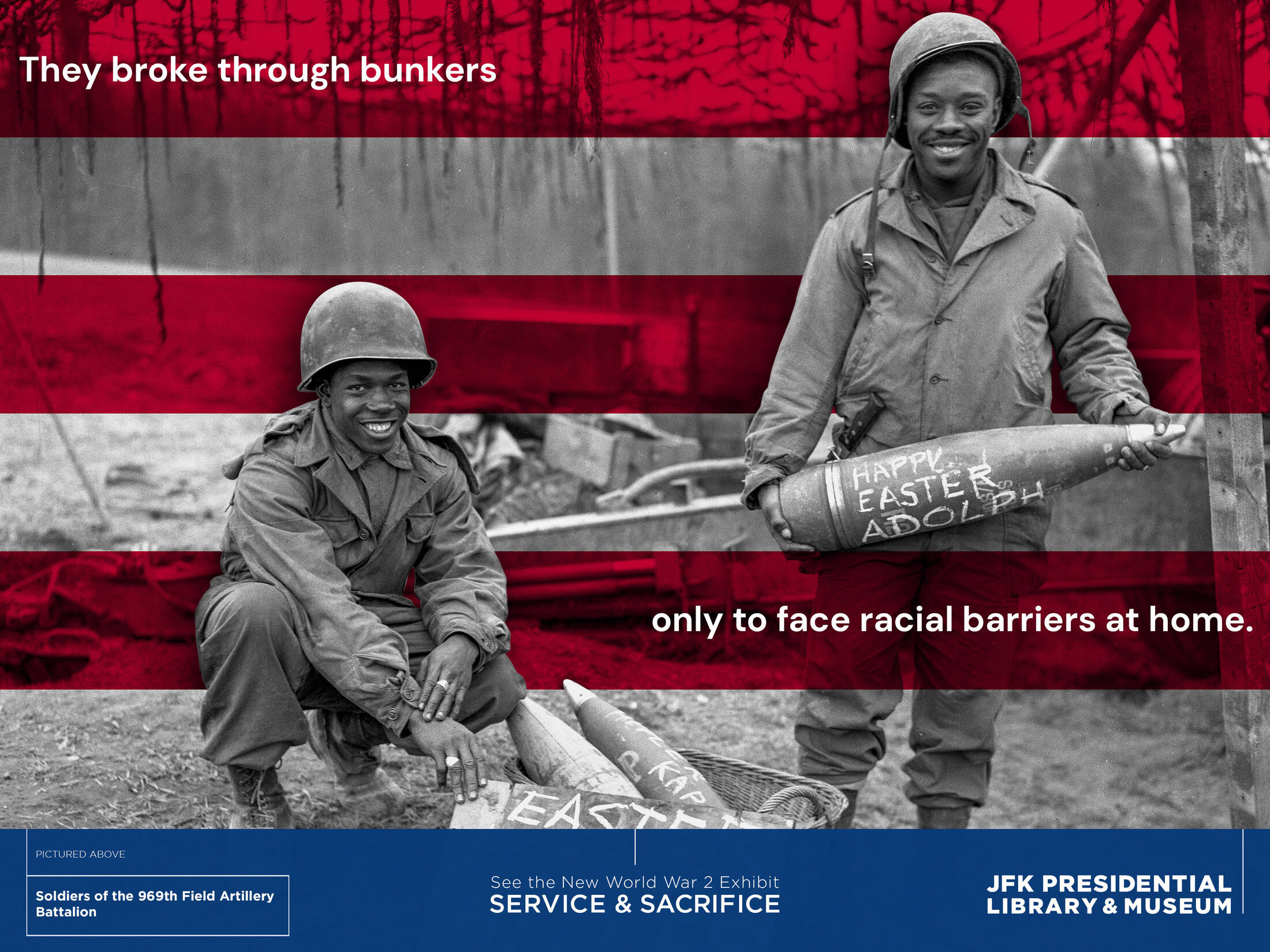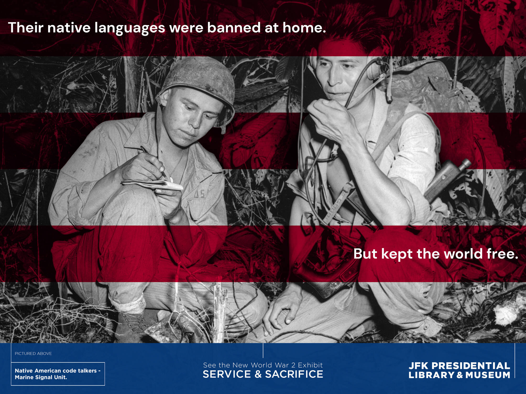 Service and Sacrifice offers personal glimpses of a few of the Americans who served in World War II, including members of the Kennedy family and the untold stories of historically marginalized communities, including people of color and women, and how they relate to today.