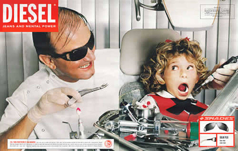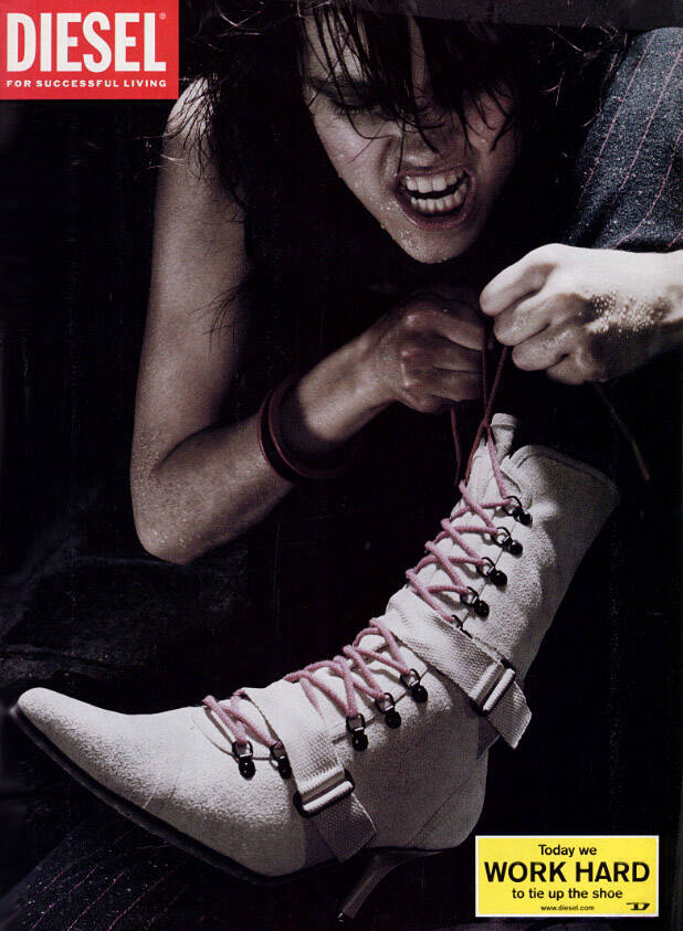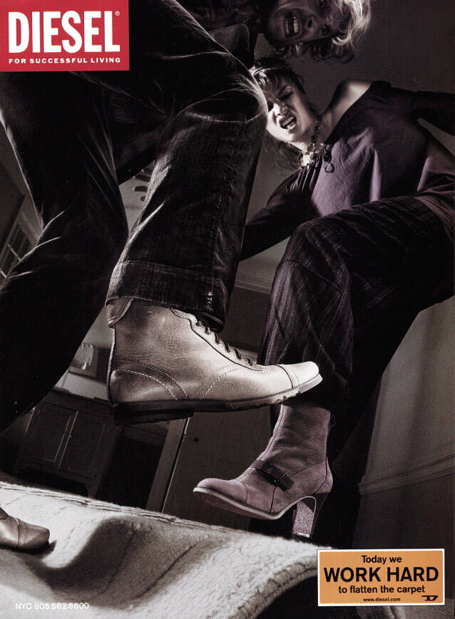 This professional campaign titled 'Shades, Heart of stone, Shoe, Game, Carpet, Dinner' was published on October 01, 2005. It was created for the brand: Diesel, . This Print medium campaign is related to the Fashion industry and contains 6 media assets. It was submitted about 20 years ago.