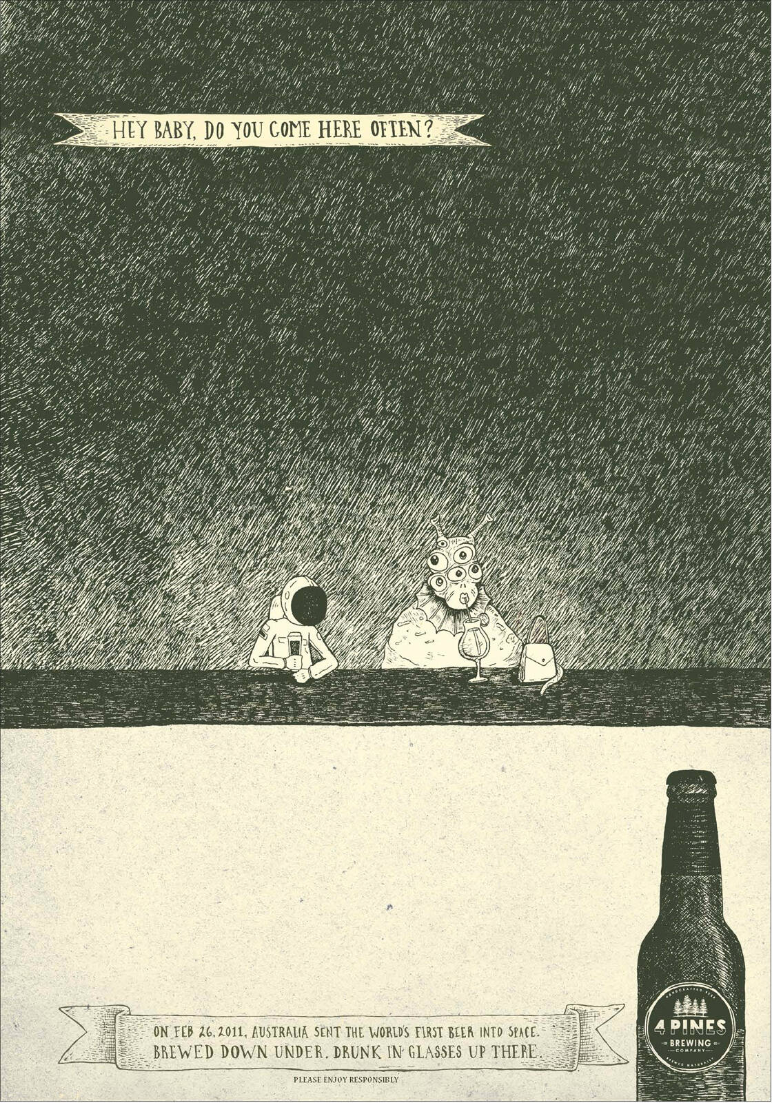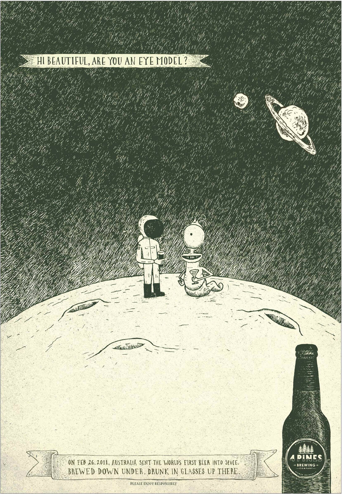 This professional campaign titled 'She's gorgeous, Are you an eye model?, Do you come here o...' was published in Australia in June, 2012. It was created for the brand: 4 Pines Brewing, by ad agency: Grey. This Print medium campaign is related to the Alcoholic Drinks industry and contains 3 media assets. It was submitted over 13 years ago.