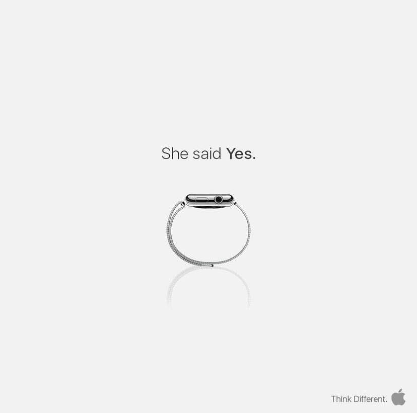 This student campaign titled 'She said Yes' was published in India, United Kingdom, and United States in February, 2023. It was created for the brands: Apple and Apple Watch, by ad school: Interplay. This 360°, Design, and Print media campaign is related to the Electronic Devices, Electronics, Technology, and Personal Accessories industries and contains 1 media asset. It was submitted almost 3 years ago by Director: Vikas Mehta of Remark Advertisments.