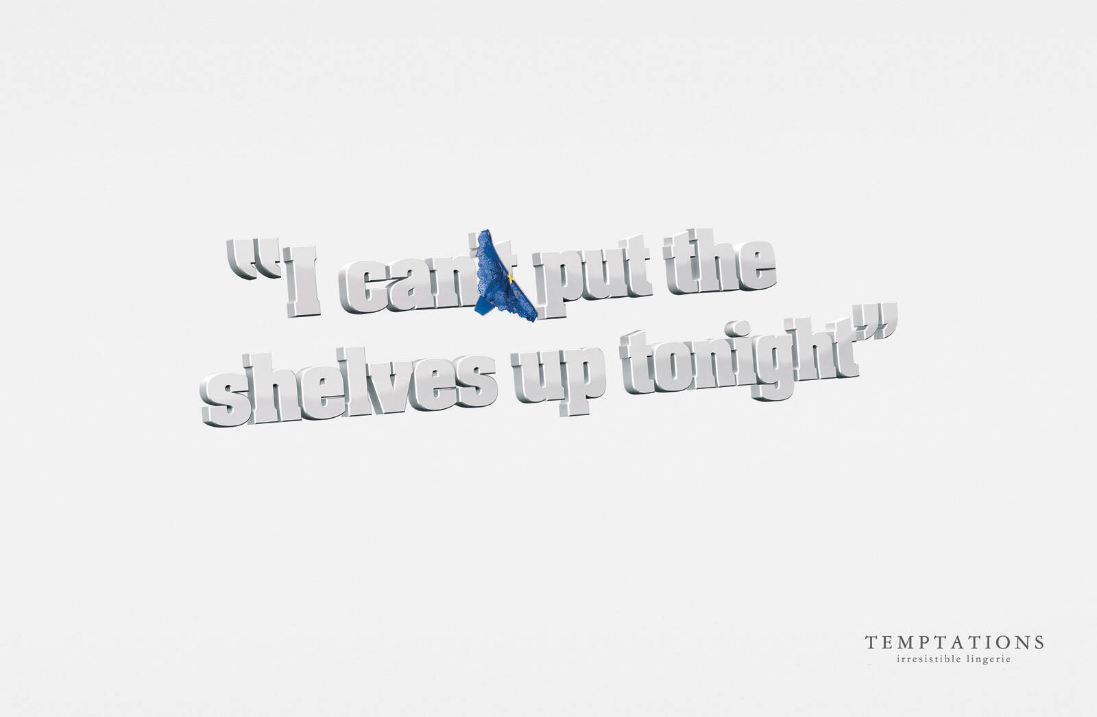This professional campaign titled 'Shelves, Commitment, Stray Kitten' was published in South Africa in December, 2011. It was created for the brand: Temptations, by ad agency: The Jupiter Drawing Room. This Print medium campaign is related to the Fashion industry and contains 3 media assets. It was submitted almost 14 years ago.