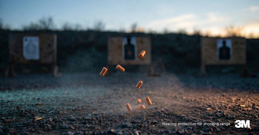At a shooting range, the moment after a shot is usually defined by empty shell casings ejecting from the gun. In this ad, those familiar casings are replaced with bright orange earplugs flying through the air instead.