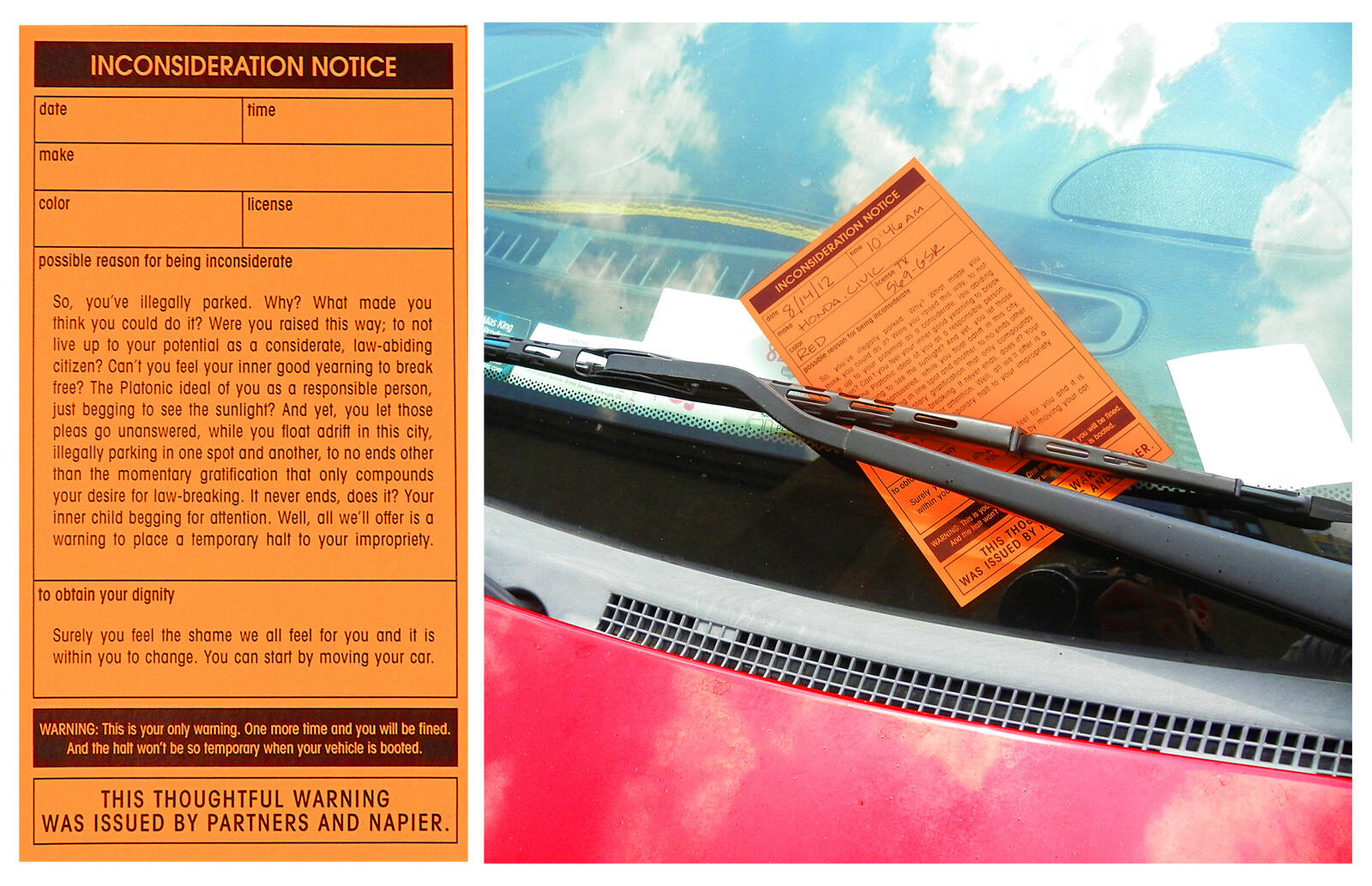 This professional campaign titled 'Shopping, No exceptions, Move in, Interview, Handicapped,...' was published in United States in October, 2012. It was created for the brand: Partners + Napier, by ad agency: Partners + Napier. This OOH Outdoor medium campaign is related to the Agency Self-Promo industry and contains 9 media assets. It was submitted about 13 years ago.